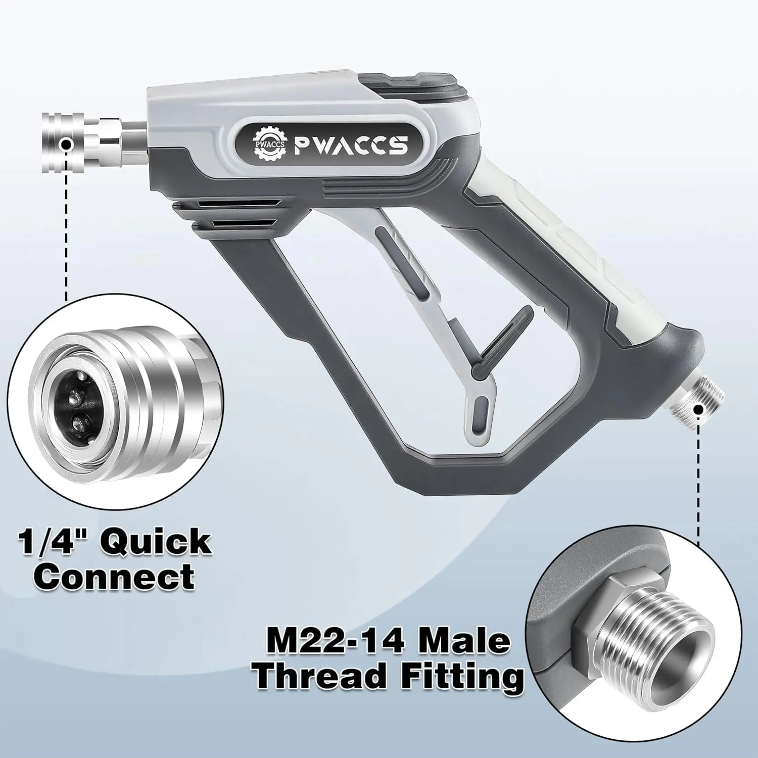 ·HIGH-PRESSURE SPRAY LANCE - PWACCS pressure washer short spray lance kit features an M22-14mm fitting. Max working pressure is 4000 PSI. A new handle structure is designed to reduce the arm's burden when using the foam lance.