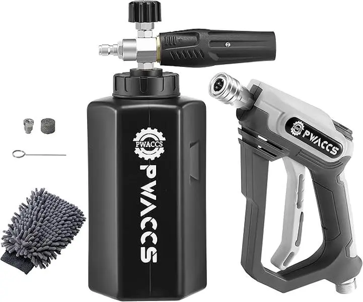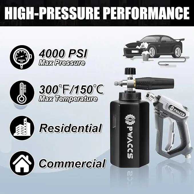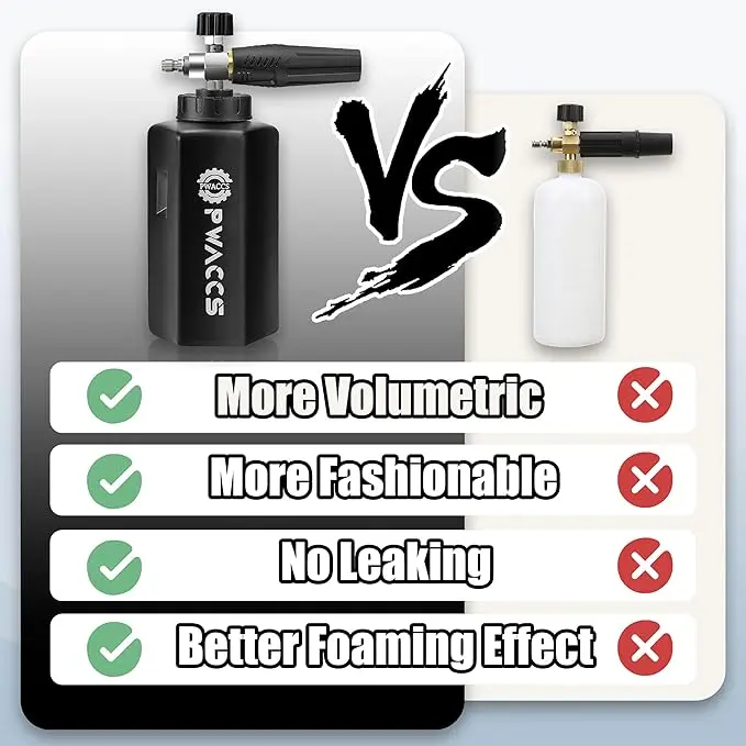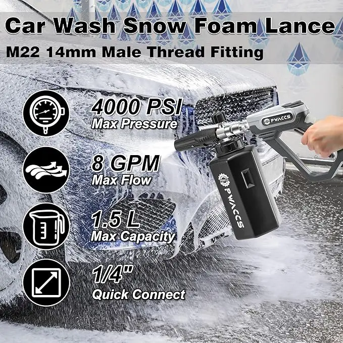 ·DENSE & THICK FOAM - The heavy-duty foam core of the pressure washer foam cannon creates a snow-like foam that clings to the car's surface. Effortlessly remove dirt and grime from your vehicle. Achieve professional-level cleaning results with a specially designed foam cannon kit.