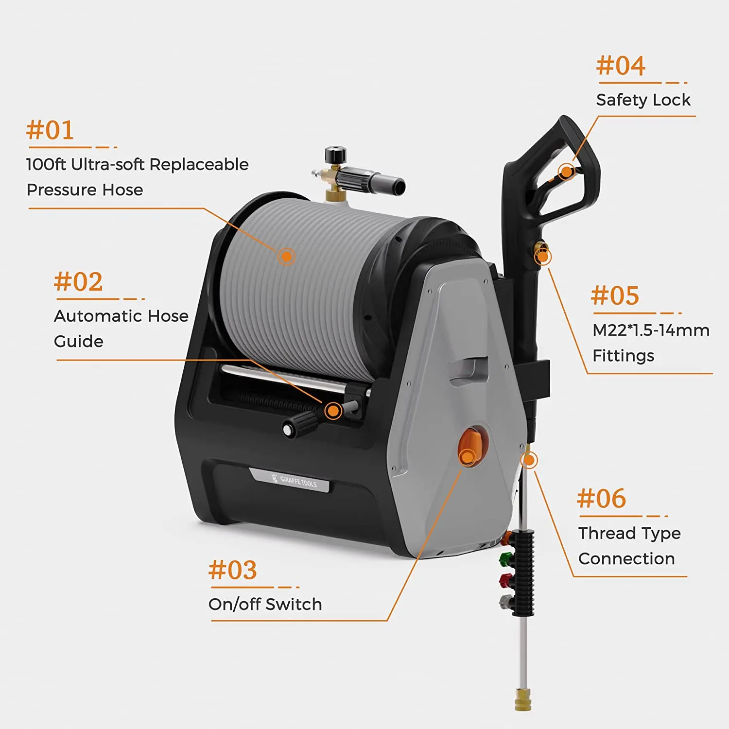 ·Pressure Hose Type: Replaceable & Ultra-Soft Grey Hose
