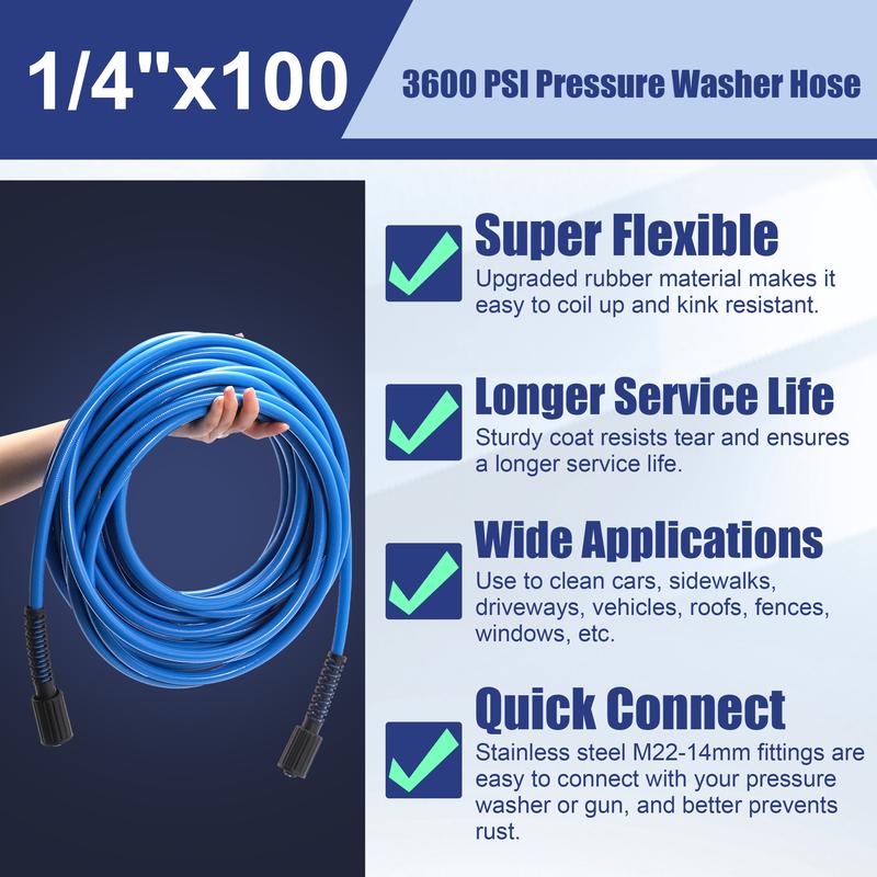 ·pressure washing hose is made of upgraded rubber and PVC materials, making it easy to coil up and resist kinking. It maintains its flexibility even in cold weather, providing greater maneuverability and reach compared to the original hose that comes with your power washer.