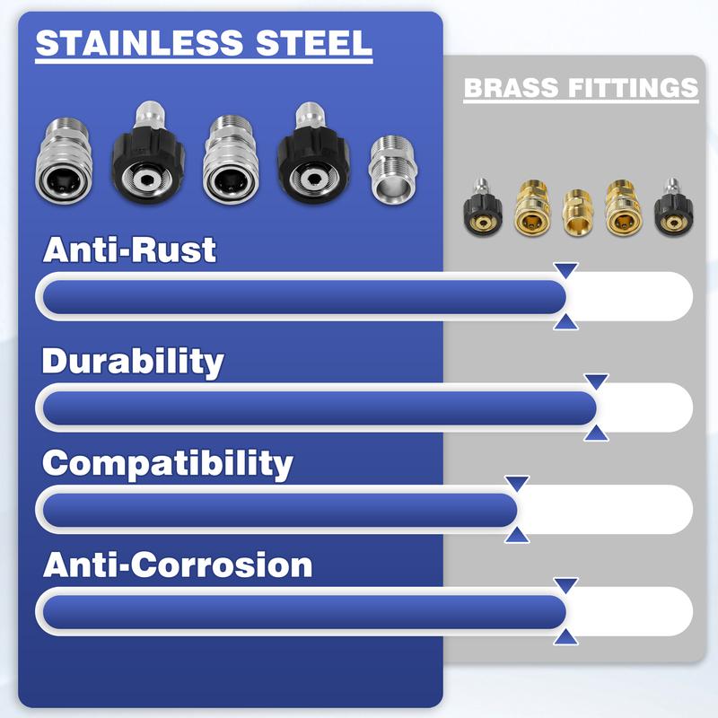 ·The high pressure hose is equipped with five stainless steel M22-14mm fittings, making it rustproof and can be compatible with most popular pressure washers brands such as Karcher, Troy Bilt, Ryobi, Honda, Simpson, Generac, Flexzilla, Craftsman, Greenworks, Briggs and Stratton, Dewalt, Sun Joe.