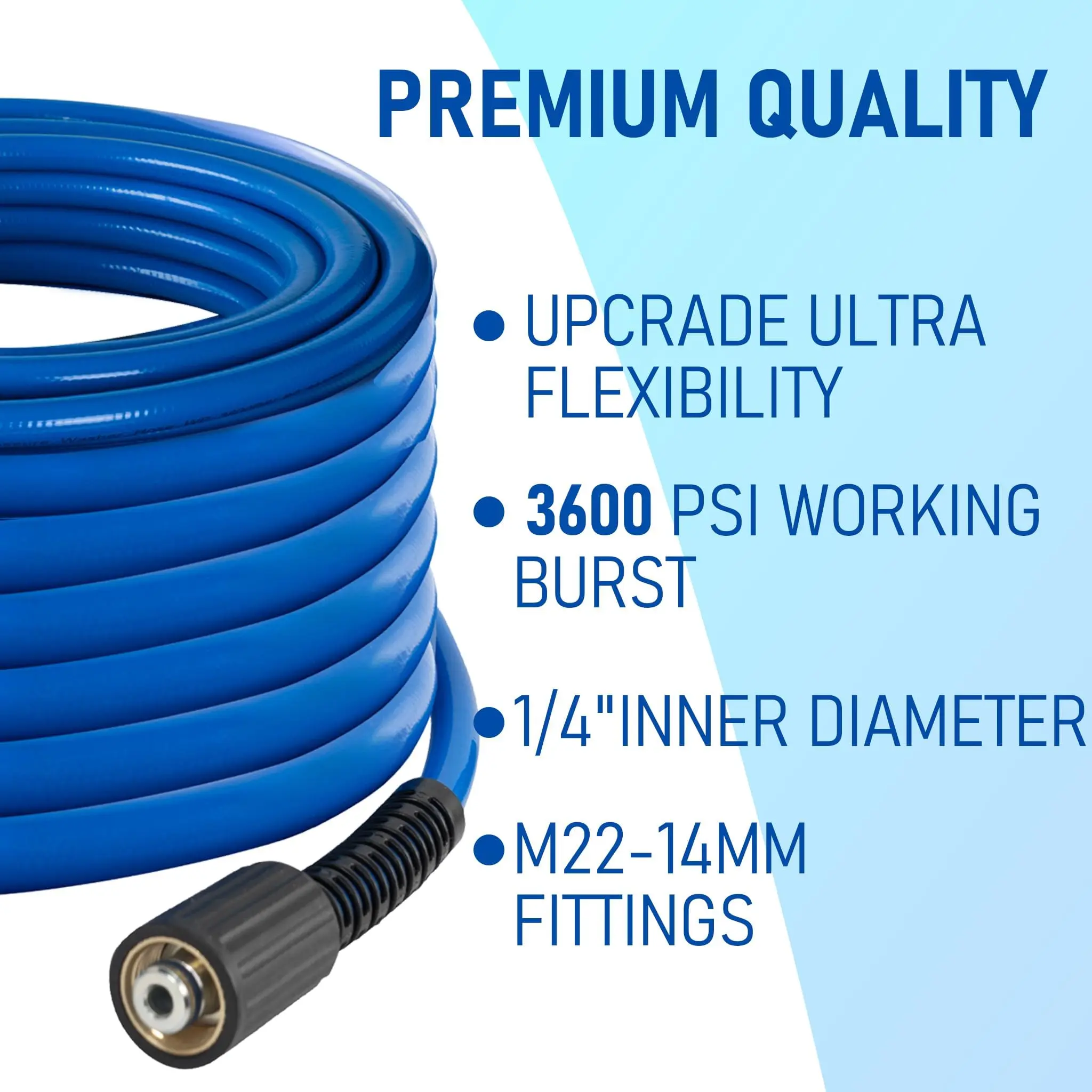 ·Important Note: This product is a high-pressure washing hose, not a regular water hose and is not suitable for faucets. Only suitable for pressure washer gun, pressure washer