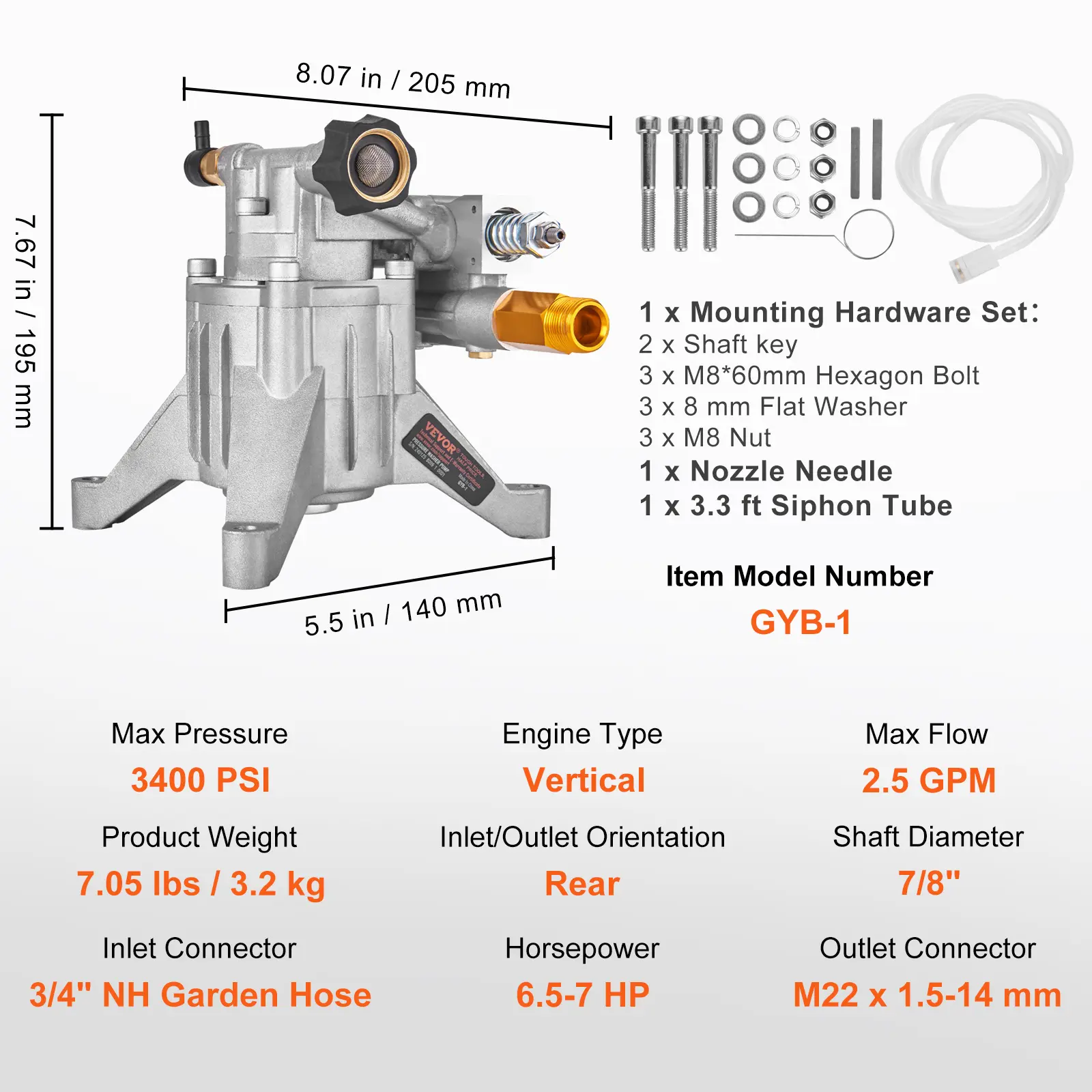 • Easy to Start: Our power washer replacement pump boosts simple and quick cold starts to make the startup a breeze. No need to release pressure before starting the engine. Each kit includes a detergent hose, 3 M8*45 bolts, 3 D8 flat pads, 3 D8 spring washers, and a shaft key (4.78 x 4.78 x 40). Set up in a few minutes!