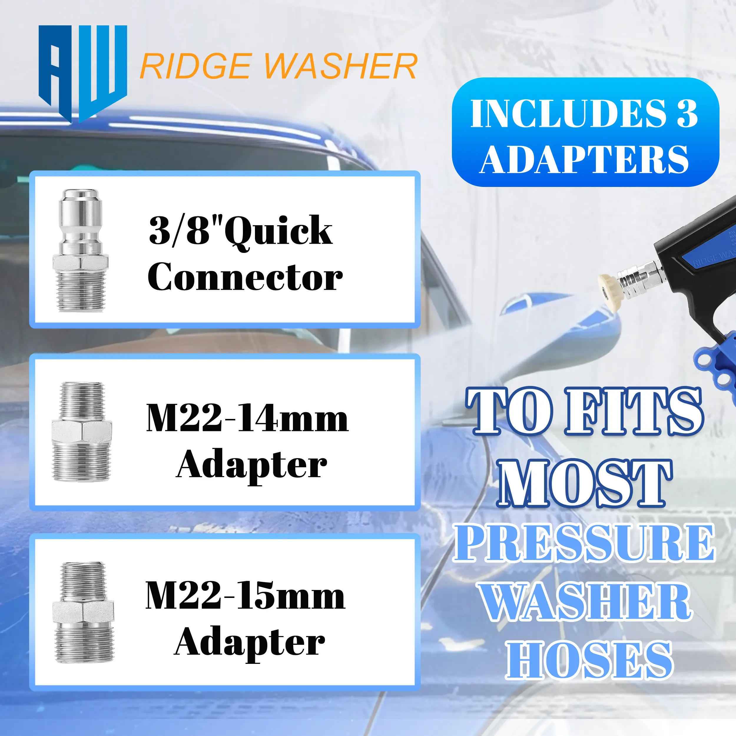 VERSATILE CONNECTIVITY: The 1/4’' quick connector is compatible with a wide range of accessories, including turbo nozzles, surface cleaners, water brooms, undercarriage cleaners, pivoting couplers, foam cannons, sandblasting kits, gutter cleaners, and more, making it an ideal addition to your pressure washer setup.