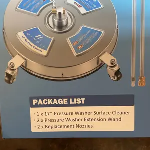 The Power Washer Surface Cleaner delivers exceptional cleaning efficiency, reducing your cleaning time significantly. Perfect for stubborn stains on vast, flat surfaces like patios, driveways, decks, and sidewalks. Its design tackles tough dirt effortlessly, making it an essential tool for home maintenance.