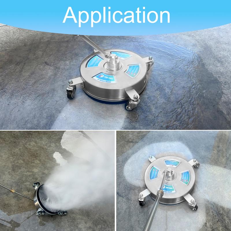 APPLICATION: The 14-inch surface cleaner outperforms a standard pressure washer's spray tool in efficiency, making it perfect for extensive cleaning chores. It stands out in cleaning vast areas like driveways, patios, rooftops, walls, and sidewalks.
