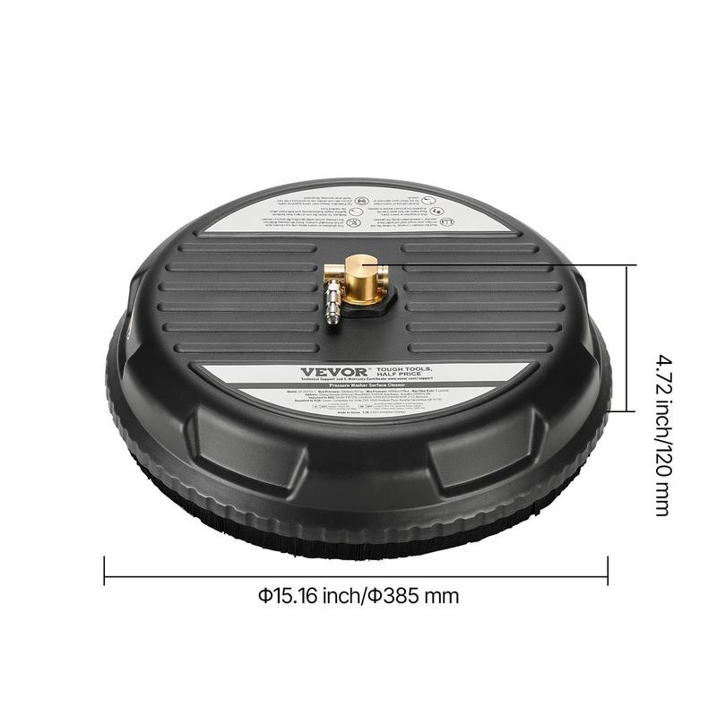5. VEVOR 15" Pressure Washer Surface Cleaner, Plastic Pressure Washer Attachments with 4 Wheels, 3000 Max PSI, 1/4 Quick Connector, 2 Spray Nozzles, Ideal for Driveways, Sidewalks, Patios, Decks, Black