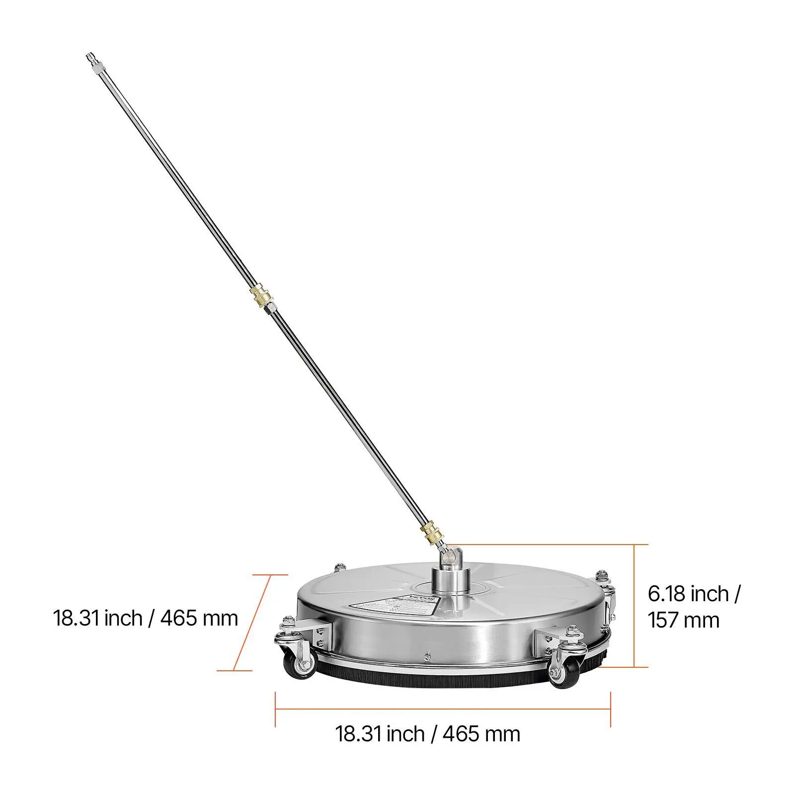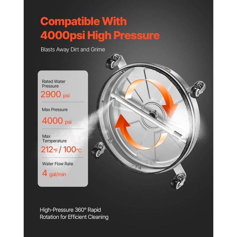 • φ18 Inch Fast & Efficient Cleaning: With a high flow rate of 4 gal/min, this φ18-inch pressure washer surface cleaner ensures uniform coverage, leaving no spot behind. Whether it's a big task or regular cleaning, it makes the job easy. Enjoy efficient cleaning while saving time and effort.