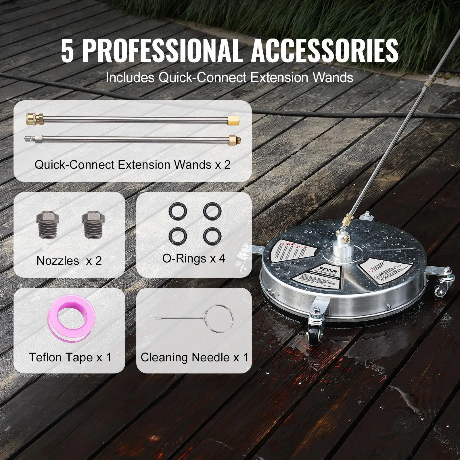 • Comes with Extension Poles: The product is equipped with 5 professional accessories, including 2 quick-connect extension poles to help you get into cleaning faster. It also includes 1 unclogging needle to address blockage issues as needed.