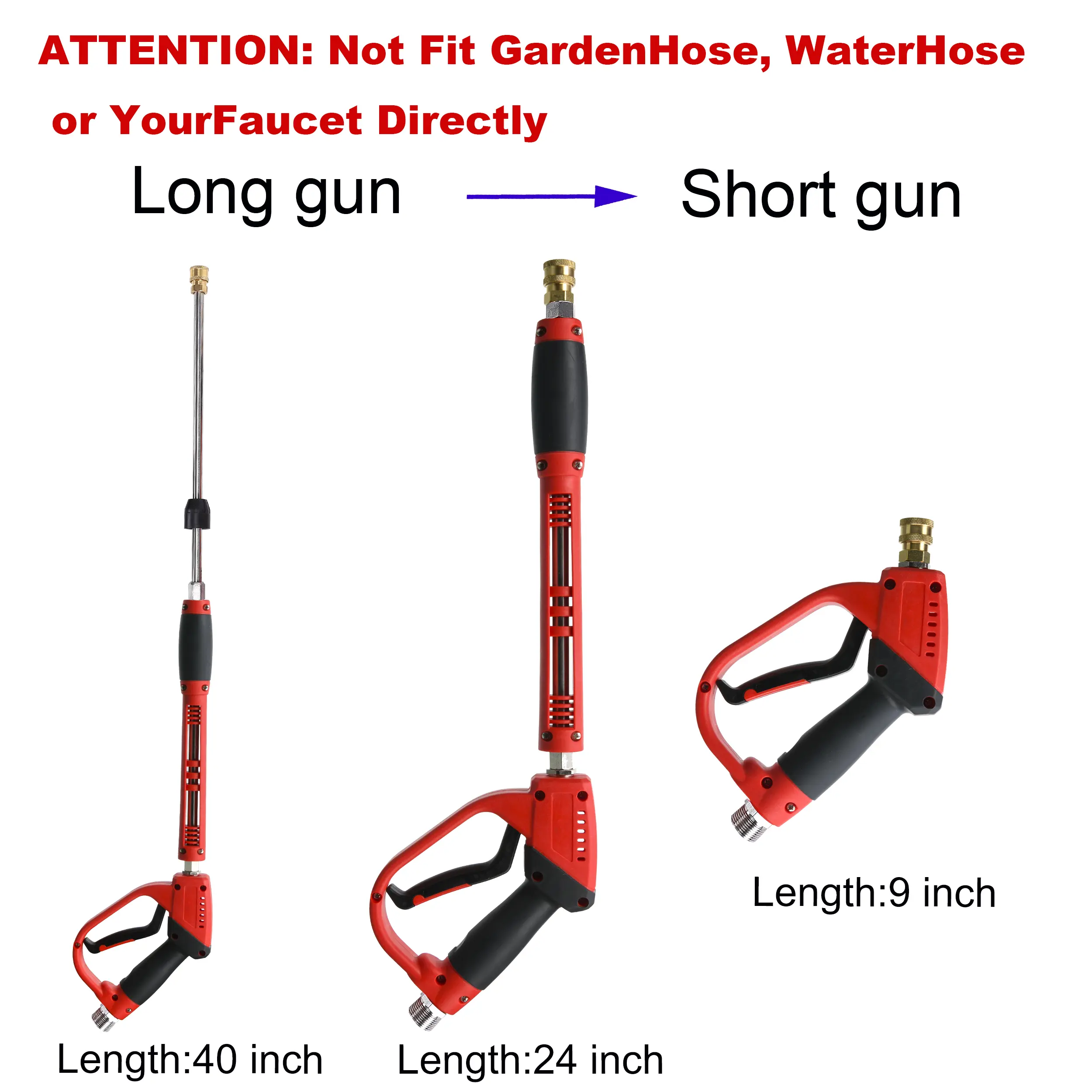 ·Replacement pressure washer Handheld Water Spray Tool has three lengths to use. Three Length: 40 inch, 25 inch, 8.8 inch. Pressure washer wands are compatible with almost gasoline powered and electric powered pressure washers.