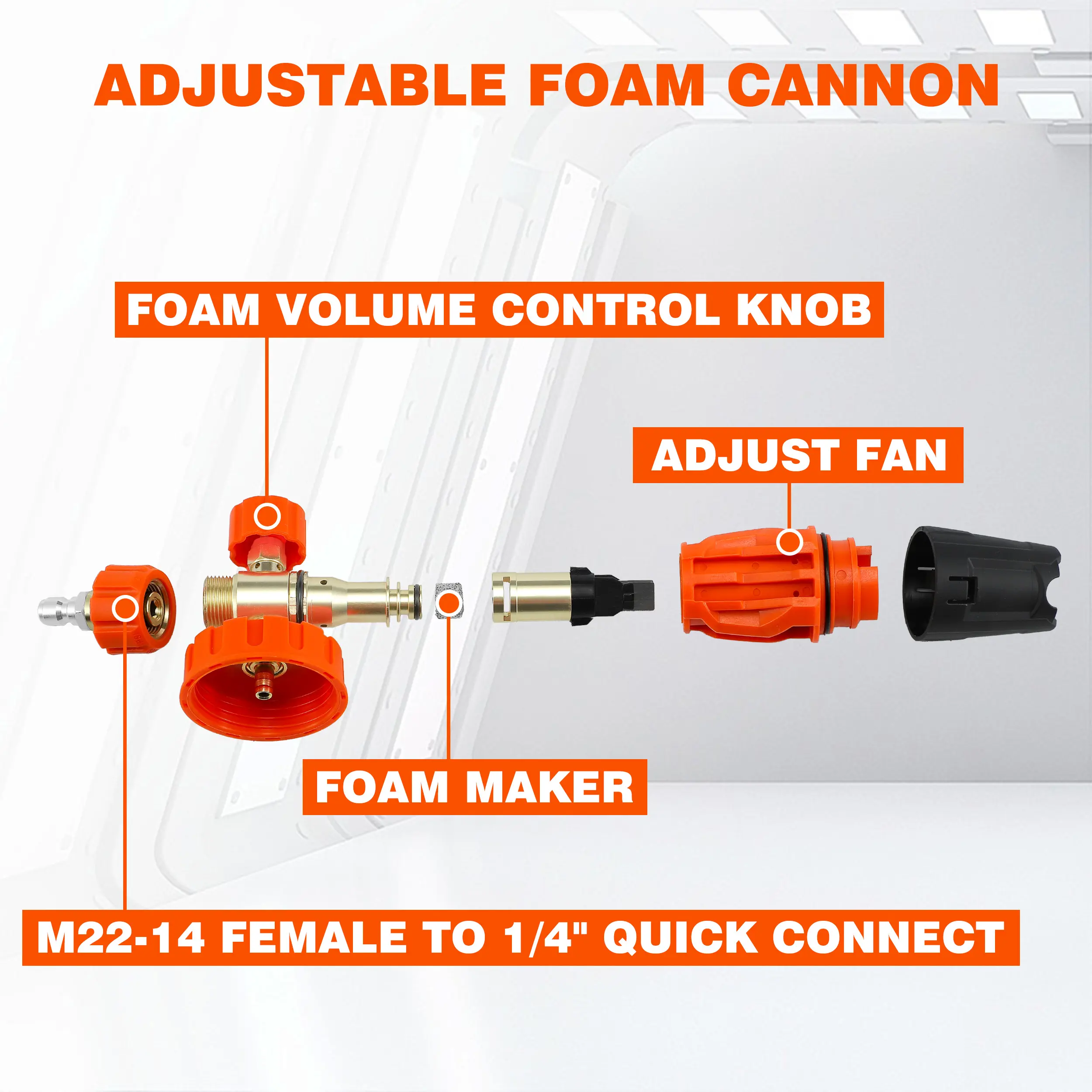 ·WIDE APPLICATION: Car foam wand is ideal for a variety of tasks, including washing motorcycles, cars, roofs, driveways, and siding. Foam blaster for pressure washer's also excellent for cleaning floors, windows, and detailing trucks or SUVs