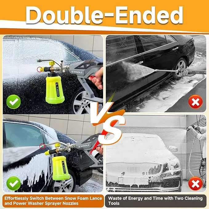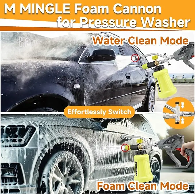 ·Foam Cannon Dual-purpose Switch Spray Wand: Unique dual-head connector with a two-way valve, allowing for easy switching between foam and water flow modes without the need to constantly change nozzles, saving you time and effort.