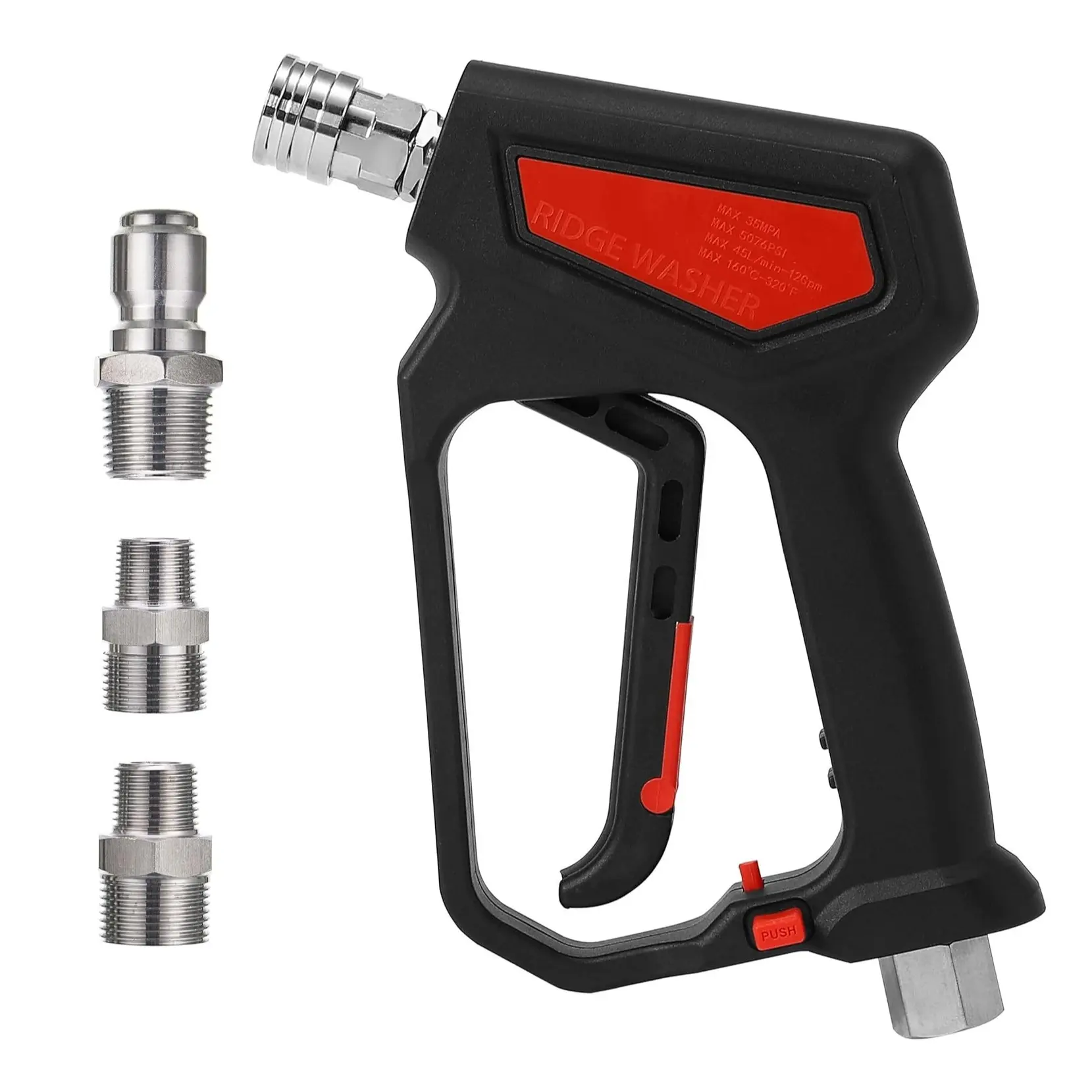 ·PACKAGE INCLUDE: Power washer short wand kit include one count high pressure short wand with four-hole nozzle holder, one count 3/8'' quick connector, one count M22-14 mm fitting and one count M22-15 mm fitting