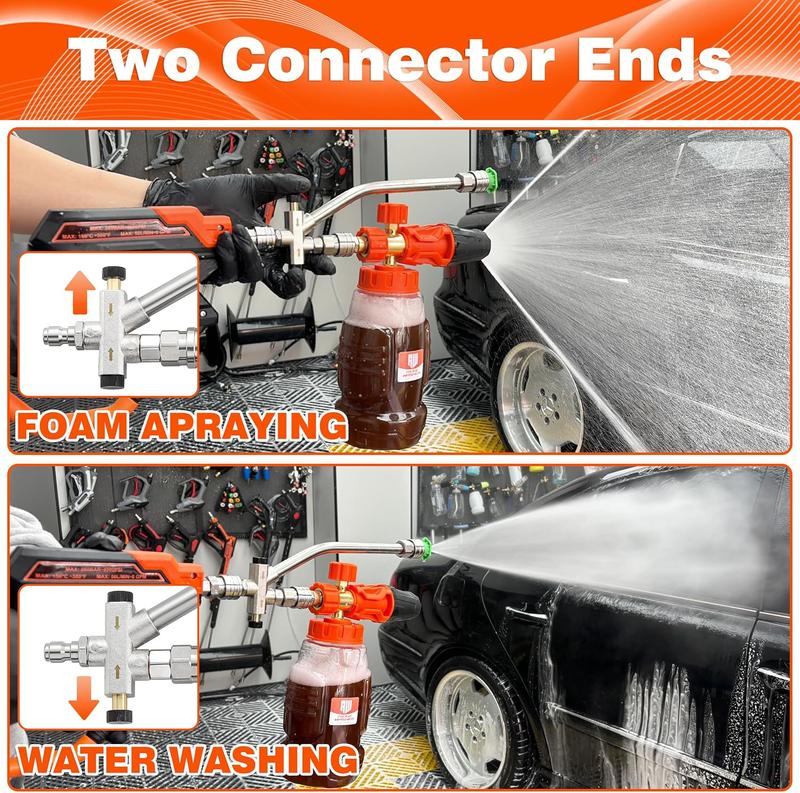 ·🔄 Unique dual-head connector with a two-way valve. Switch between foam and water flow modes effortlessly. No need to change nozzles constantly, saving time and effort.
