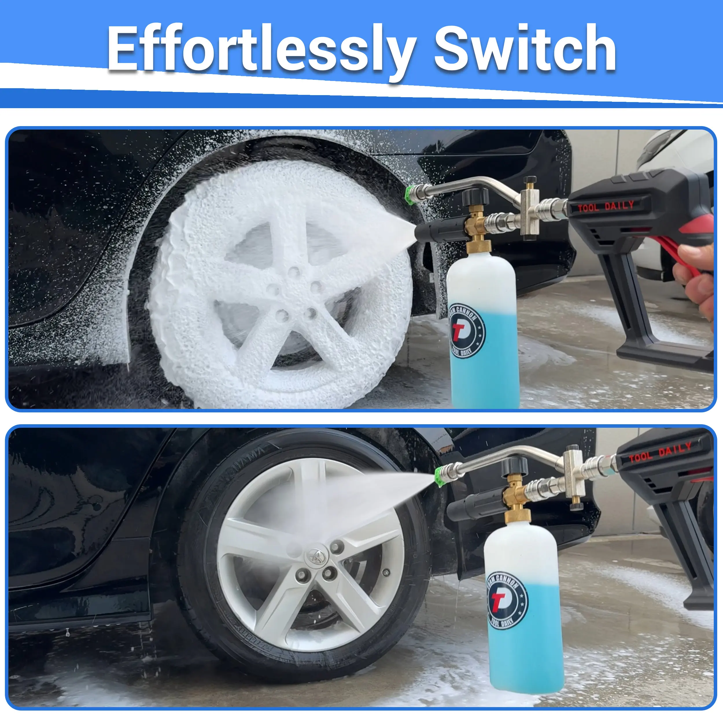 ·EFFORTLESS SWITCHING: The two-way shuttle valve lets you easily switch between the soap cannon and pressure washer tip. No need to constantly disassemble or replace parts. It saves time and hassle for different cleaning jobs, making it a very versatile and convenient cleaning tool