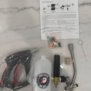·SPECIFICATIONS: Adjustable snow foam lance with a 1/4" quick disconnection fitting. Container capacity: 1 Liter/0.22 Gallon. Working pressure: 1000 to 3000 PSI. Max flow rate: 8 GPM. Max water temperature: 60℃ / 140℉. Adjustable nozzle for precise mixing and foam generation. Turn the top knob right (-) for the thickest mixture, adjust the nozzle for the right sprinkle pattern, and let it loose