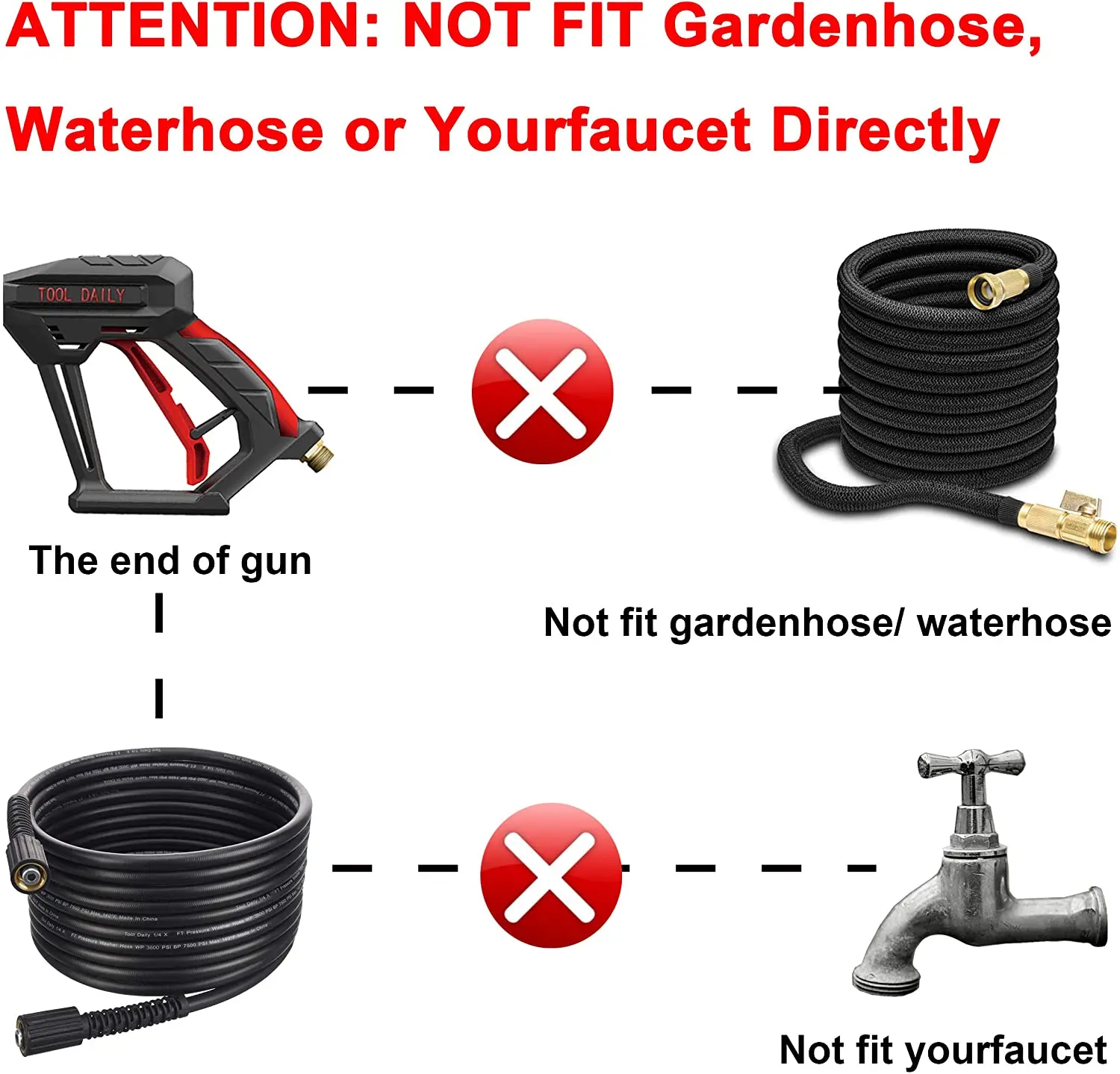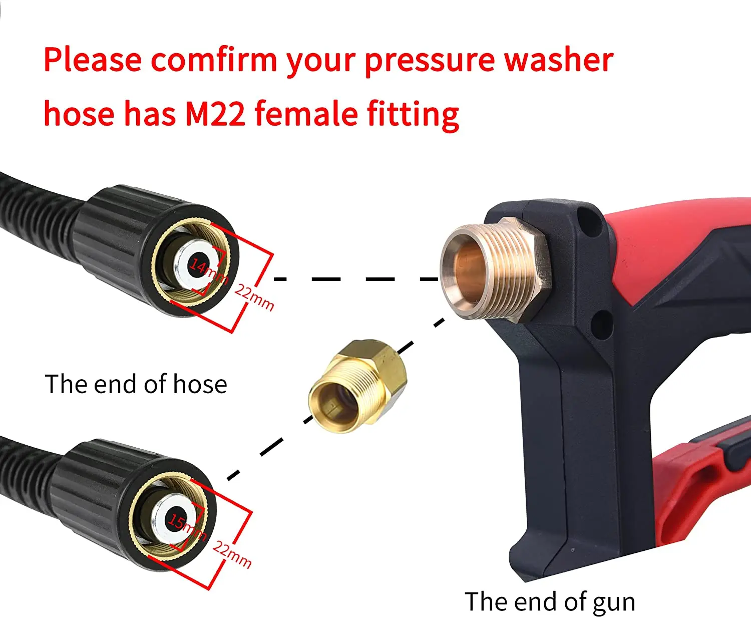 ·If hose has M22 14mm fitting with 14mm inside diameter, please connect the wand to hose directly. If hose has M22 15mm fitting with 15mm inside diameter, please connect the brass coupler to wand and hose.
