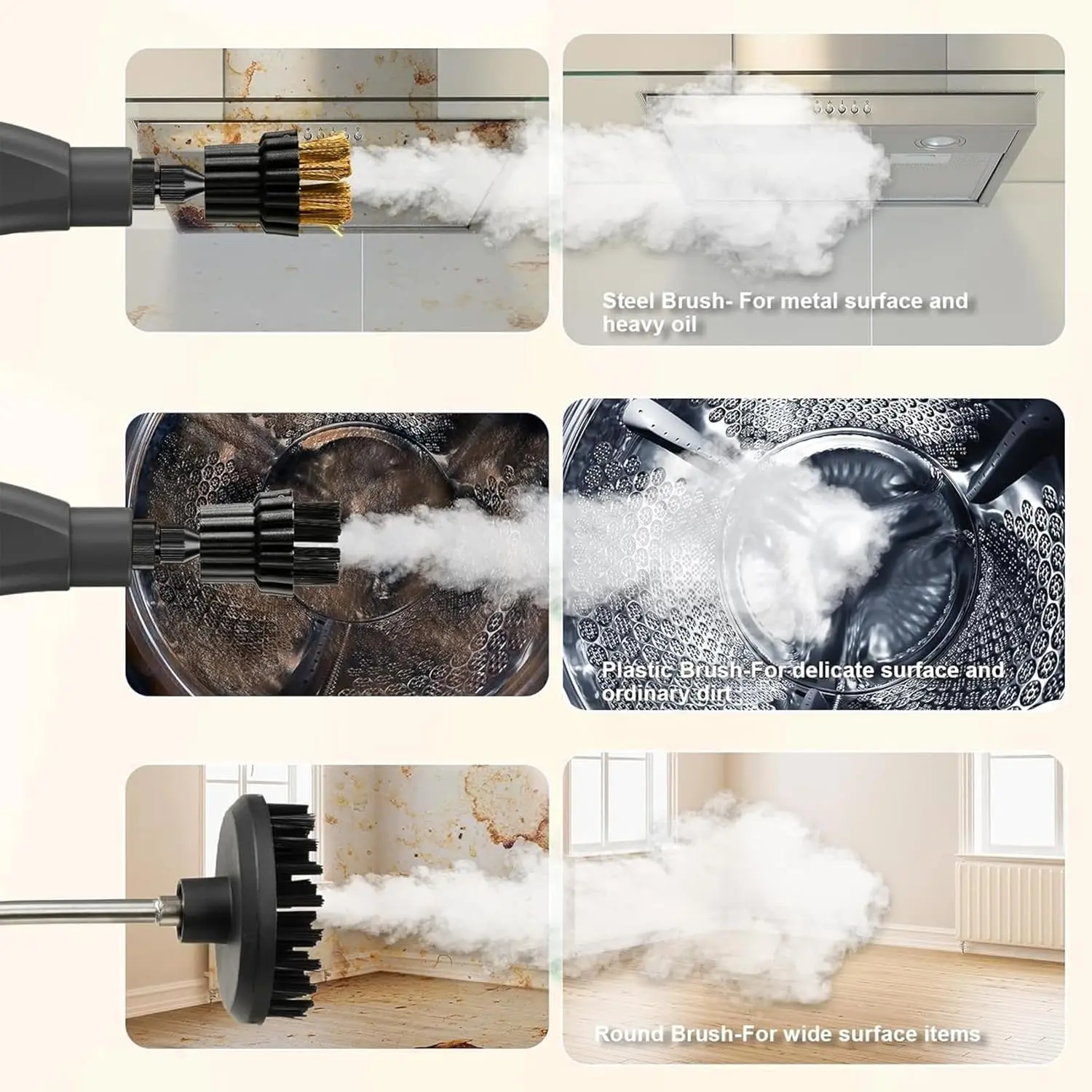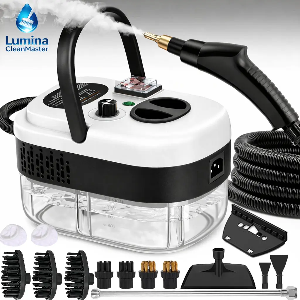 Powerful Steam Cleaning Solution The 2500W handheld steam cleaner is your ultimate cleaning tool. It offers high-temperature and high-pressure steam for thorough cleaning. Perfect for kitchen grease, car detailing, and bathroom cleaning. This versatile steamer ensures a spotless environment effortlessly. Comes with 16 accessories for enhanced functionality.Portable and Convenient This portable car steamer is designed for easy portability. Ideal for various cleaning needs around the home and on the go. The set includes 16 accessories, making it a comprehensive solution for multiple cleaning tasks. Simplify your cleaning routine with this efficient and compact steam cleaner.Versatile Cleaning Needs Suitable for kitchen grease, car detailing, and bathroom cleaning, this steam cleaner meets diverse cleaning demands. Its powerful steam capabilities ensure effective removal of dirt and grime. With its 16 accessories, you can tackle various cleaning challenges with ease. Experience hassle-free cleaning with this versatile steamer. Fast & Powerful Hot Steam: it heats up quickly in 3-5 minutes, delivering powerful pressurized steam for up to 7-15 minutes at 230'FNatural & Safe: Our steam cleaners are 100% natural and have no harmful fumes or residues. Suitable for children and pets, providing a healthy and eco-friendly cleaning solution for whole-house cleaning: The handheld steam cleaner is a versatile, multi-purpose cleaning tool that uses high-temperature steam to remove stains from a variety of surfaces without producing harmful fumes or residues. It's great for cleaning hard-to-reach crevices, corners, angles, and a variety of surfaces and materials, including kitchen sinks, barbecue grills, toilets, shower curtains, flooring, children's toys, pet mattresses, cars, sofas, and clothing. Enjoy a healthier, cleaner home with powerful, chemical-free cleaning that is portable and efficient: With its compact, handheld design, you can easily take this steam cleaner anywhere for quick tasks, including home, office, garage, and more. The 9.8-foot power cord ensures efficient operation, and its lightweight design makes it easy to carry from one room to your homePortable, compact and efficient: With its compact, handheld design, you can easily take this steam cleaner anywhere for quick tasks, including home, office, garage, and more. The 9.8-foot power cord ensures efficient operation, and its lightweight design makes it very convenient to carry from room to room at home with powerful accessories: our portable team cleaner comes with a 16-piece accessory set that provides excellent cleaning and ironing results. The kit includes a tilted nozzle, bendable extensions, brush nozzles, fabric steamer tools, rubber wipers for windows/doors, and many other additional features.Our all-in-one steamer ensures a thorough cleaning of your homeTIP: If you can't open the safety lid after using it, wait a few minutes and try again. The safety cover can only be opened when the appliance is turned off and the internal steam is cooled to prevent scalding. Open the hard hat: 1. Unplug the steamer. 2. Turn the steam cleaner upside down. 3. Press the steam trigger to release any remaining steam