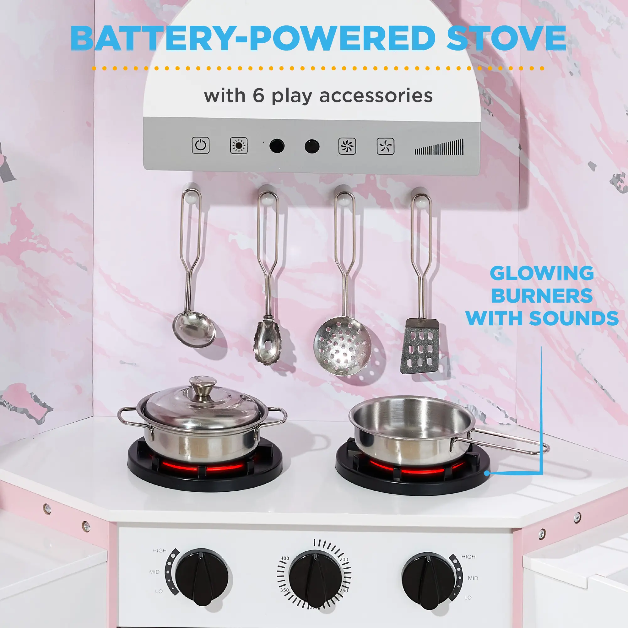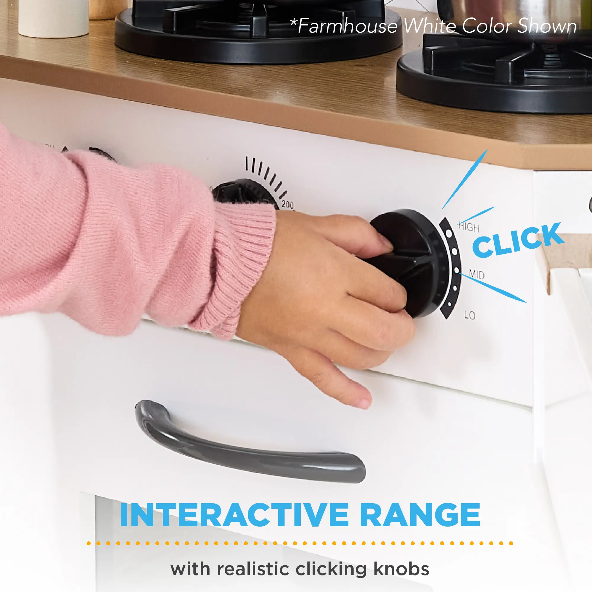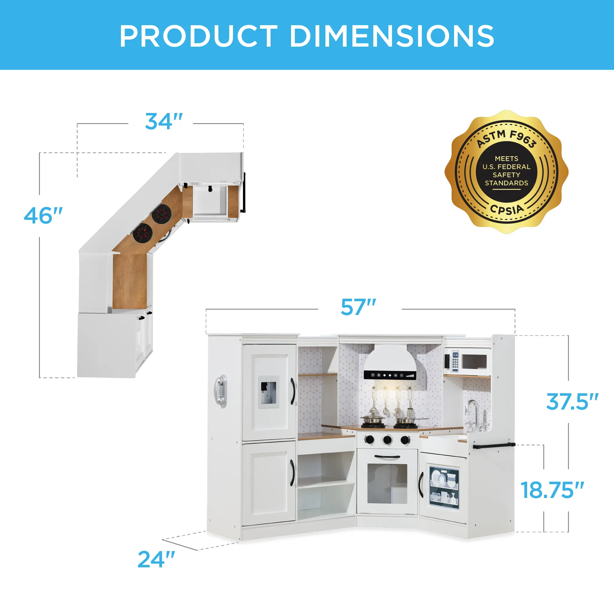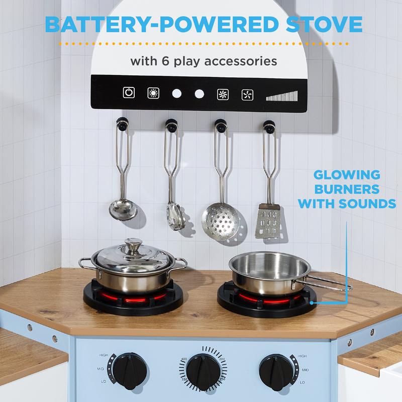 L-SHAPE DESIGN: A convenient construction allows this playset to fit comfortably in the corner of any room, so your child can engage in hours of kitchen adventures!