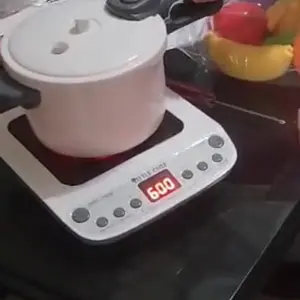 The induction cooktop mimics real cooking with realistic light and sound effects. It includes a simulated cooking timer and requires 3 AA batteries (not included). The pressure cooker releases real steam using water, offering an authentic play experience. The kettle is fillable with water and features a pull-out spout for added functionality.
