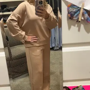The feels is more of an athletic feel, I thought it was more cotton feel. It’s still super cute tho! I’m usually a large in pants and an extra large in shirts for a “oversized” feel. I got an extra large and I feel like once I wash them it’ll be perfect! I’m 5’7 and the pants are long enough!