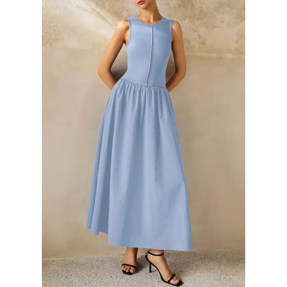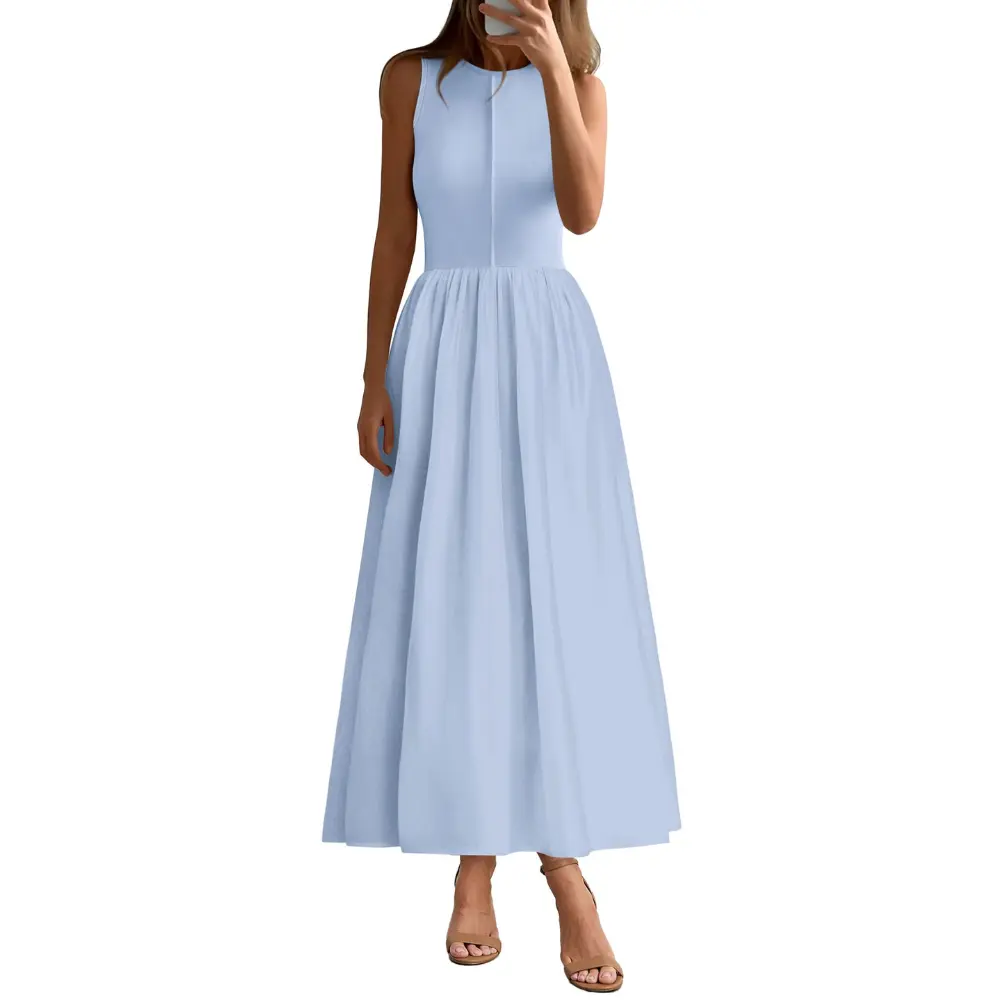 PRETTYGARDEN Maxi Dresses for Women Summer Sleeveless Patchwork Sundress