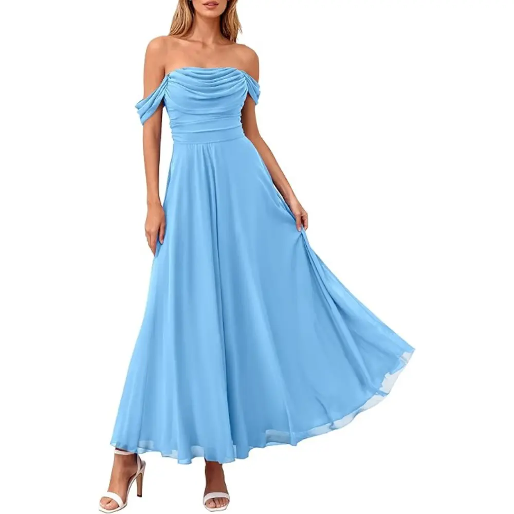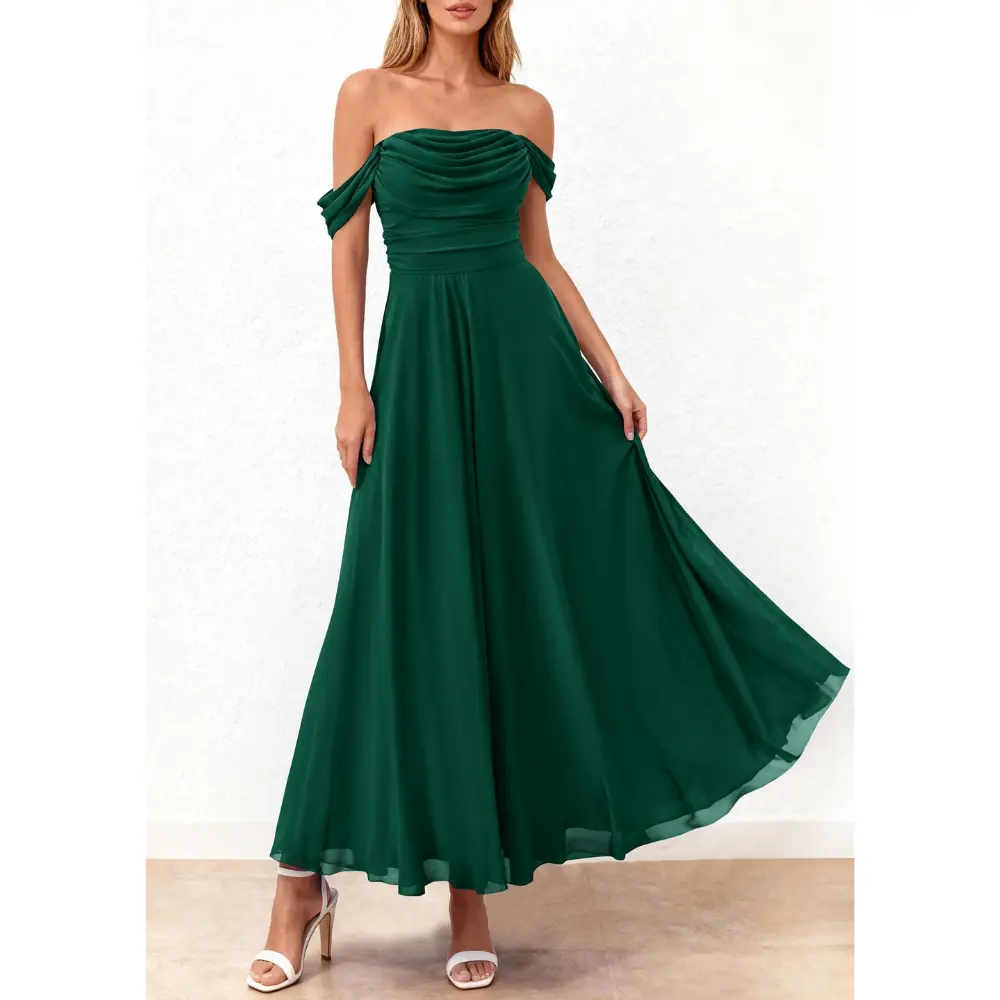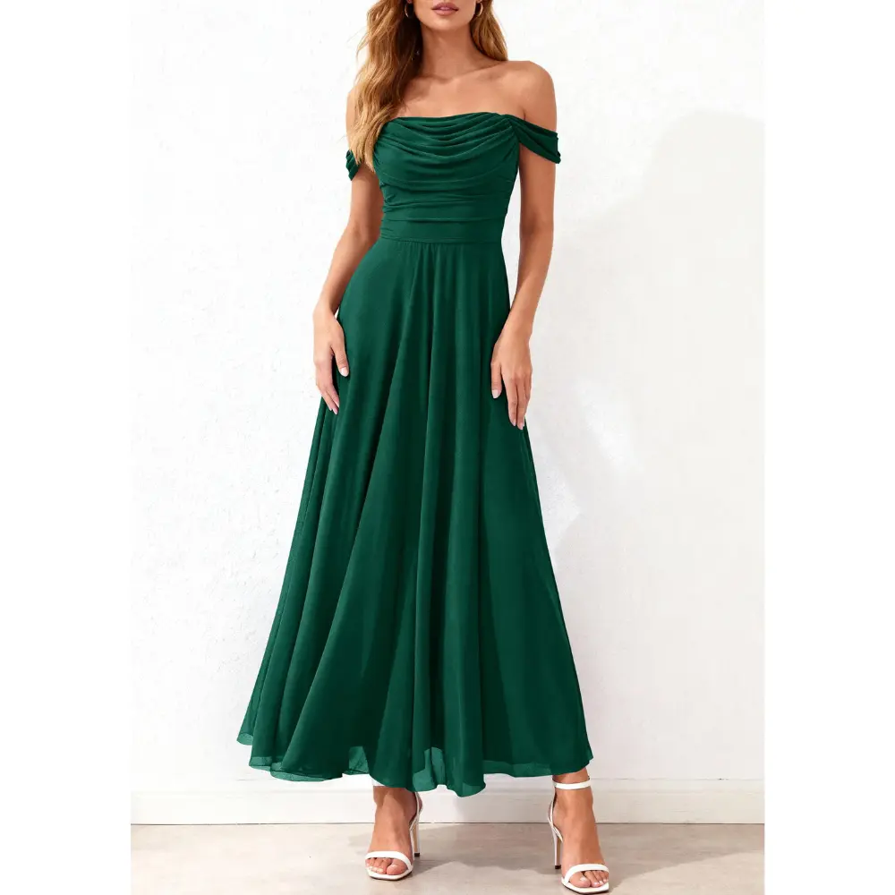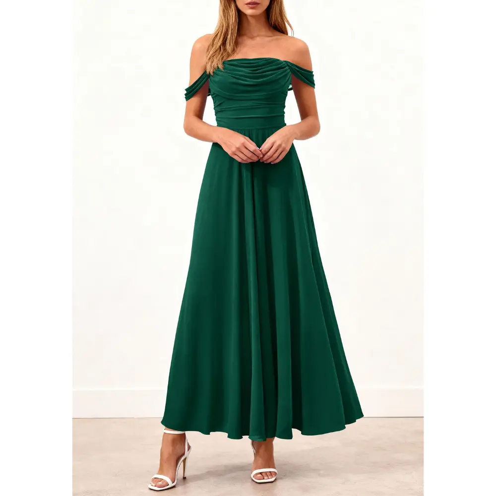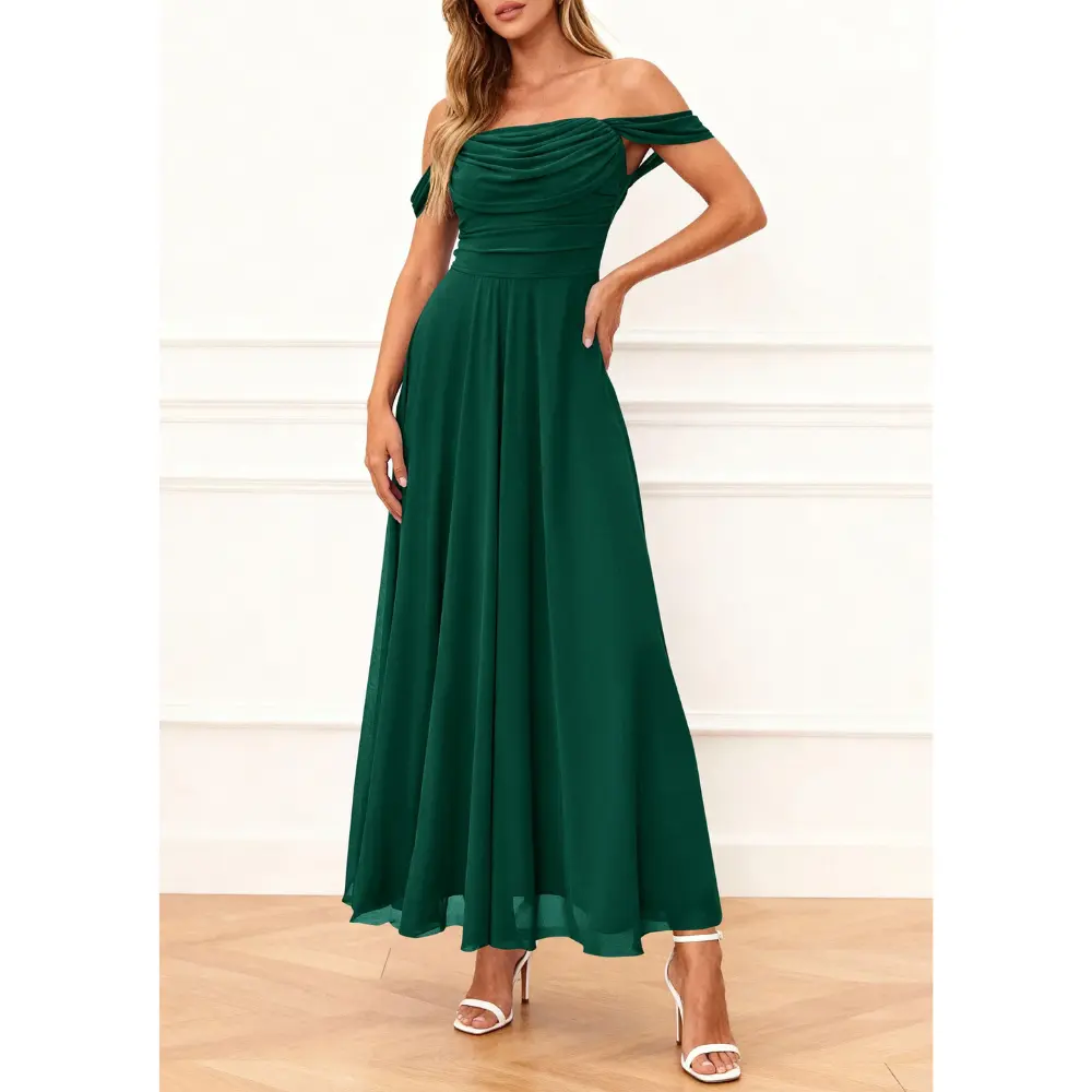 PRETTYGARDEN Women's off Shoulder Cocktail Dress Elegant Ruched Aline Long Dresses