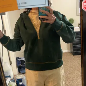 Very pretty sweater, love the gold stitching and zipper detail! This is not flimsy material either, thick and warm! Lots of compliments and asking where I got it!