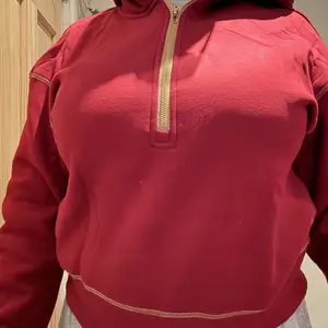 I just received my pullover sweatshirt in my favorite color blue. I purchased a large for extra roomy size. The gold zipper adds a nice touch with the gold trim on the sleeves. Material is on the thicker side, which I love.