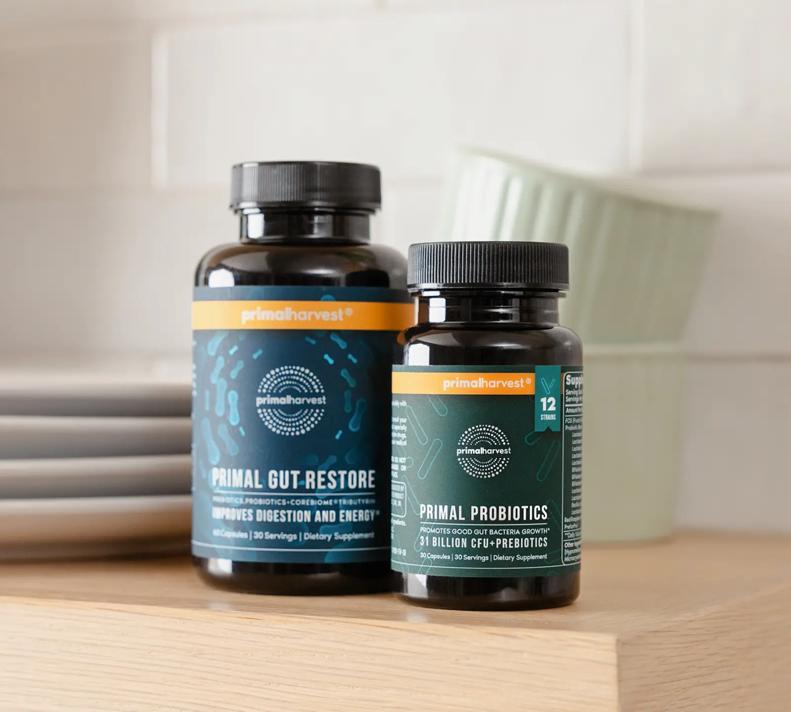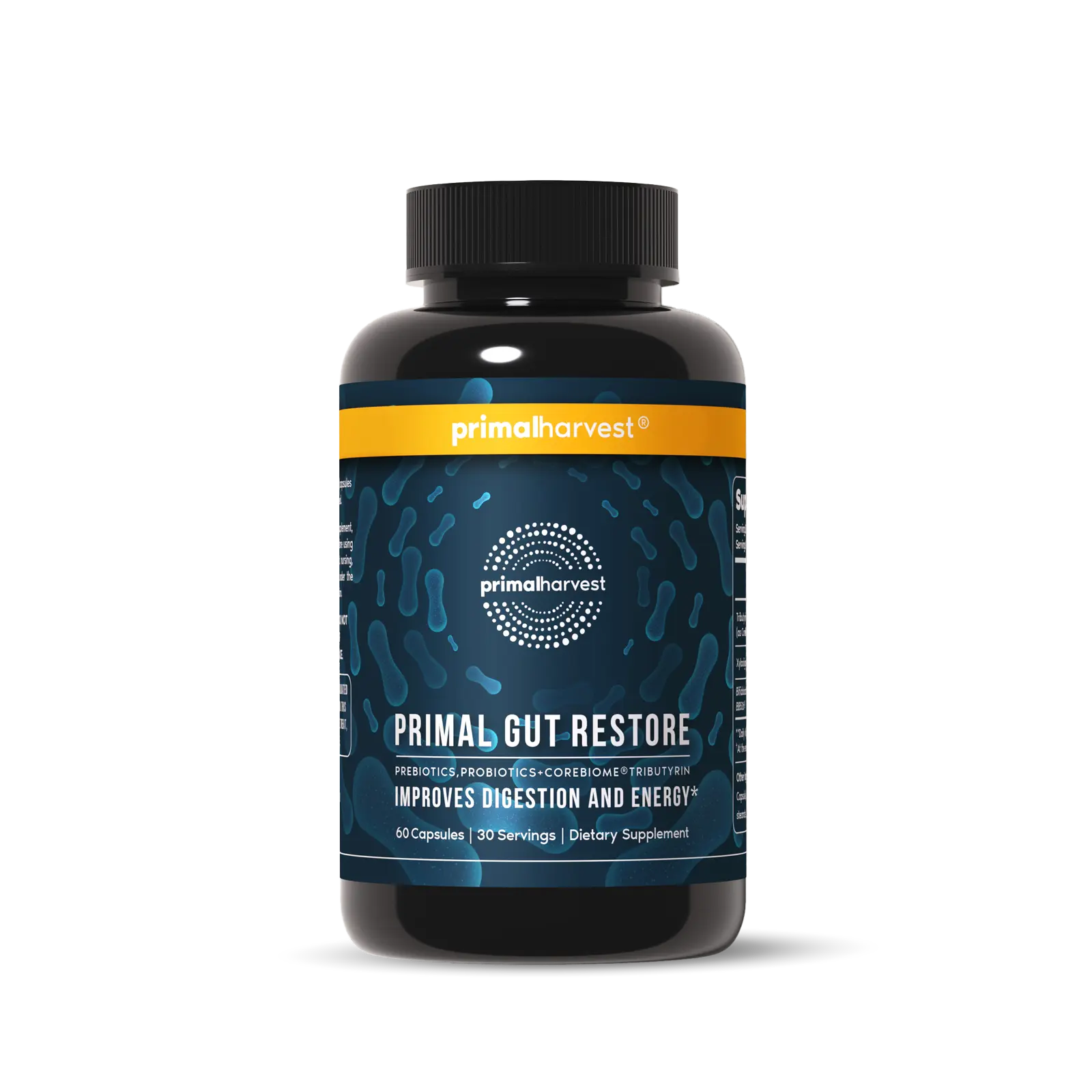 Featuring prebiotics, probiotics, and CoreBiome® postbiotic, Primal Gut Restore strengthens gut flora, supports the intestinal lining, and promotes a balanced, healthy digestive system.