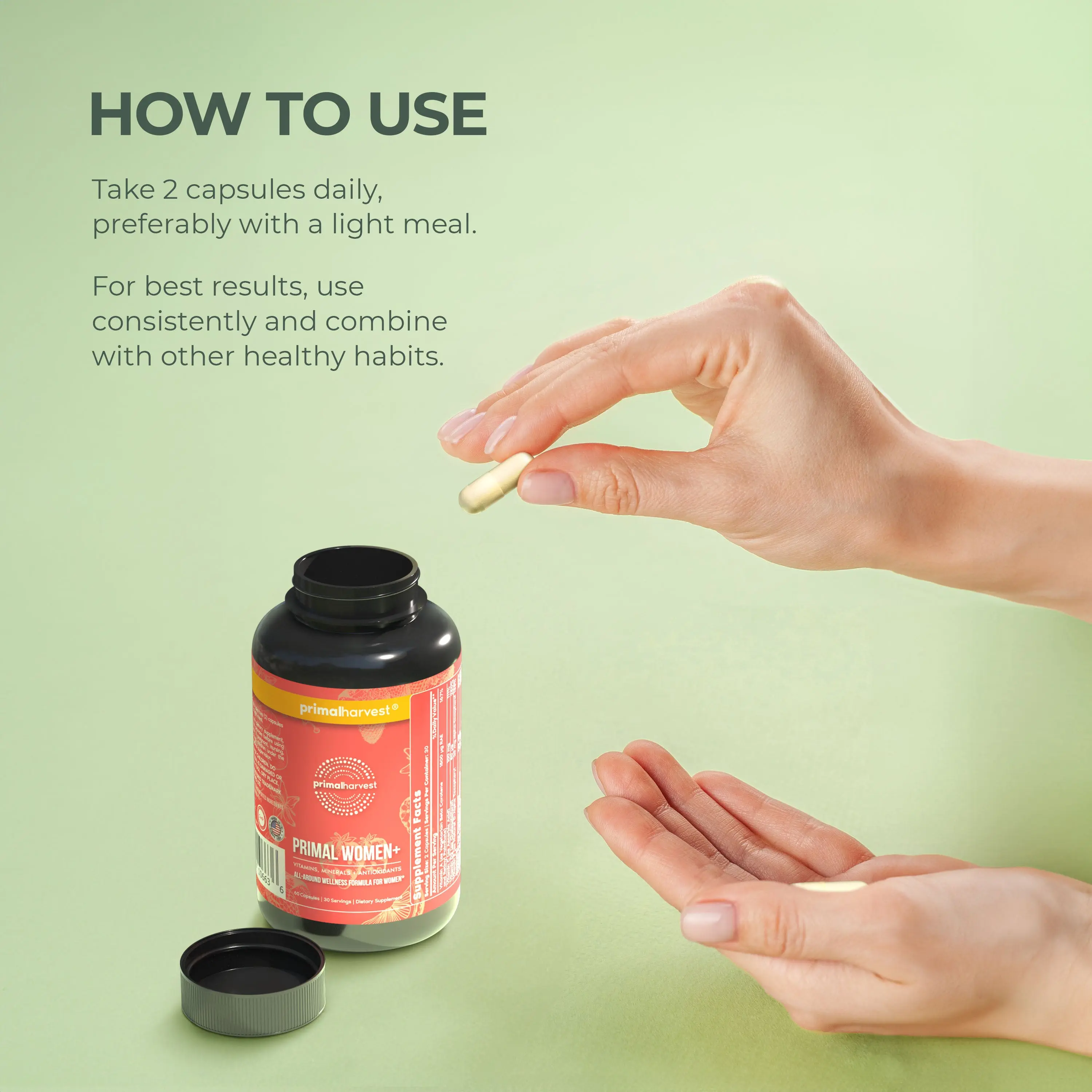 Harness the power of Primal Women+ capsules to boost your energy levels and benefit from the goodness of this US-origin product by Primal Harvest.