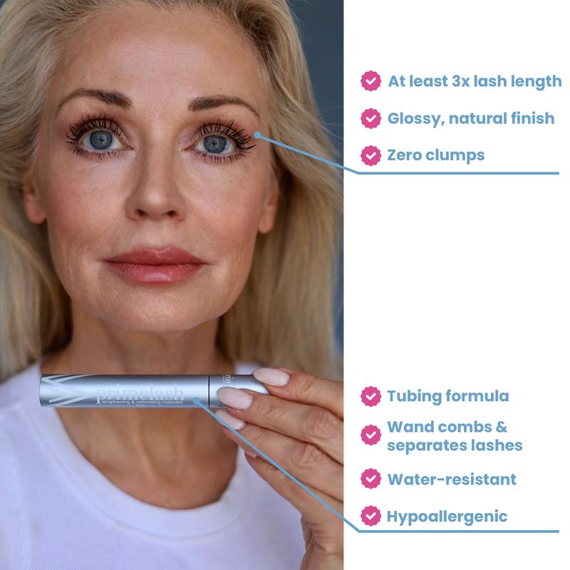 I love prime, lash mascara it goes on really well, and I love that the configuration is for older eyes, which makes them pop and last longer through the mascara. I love it.