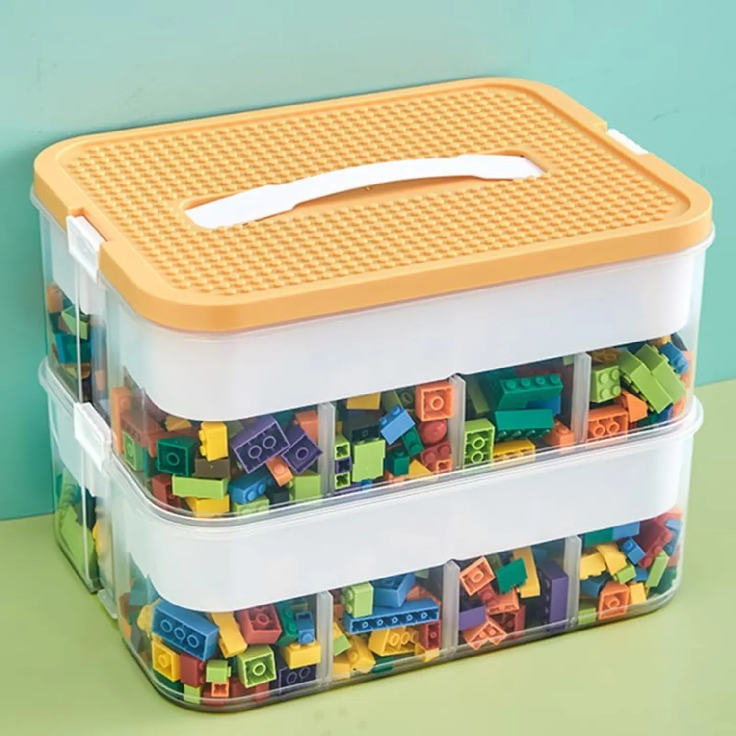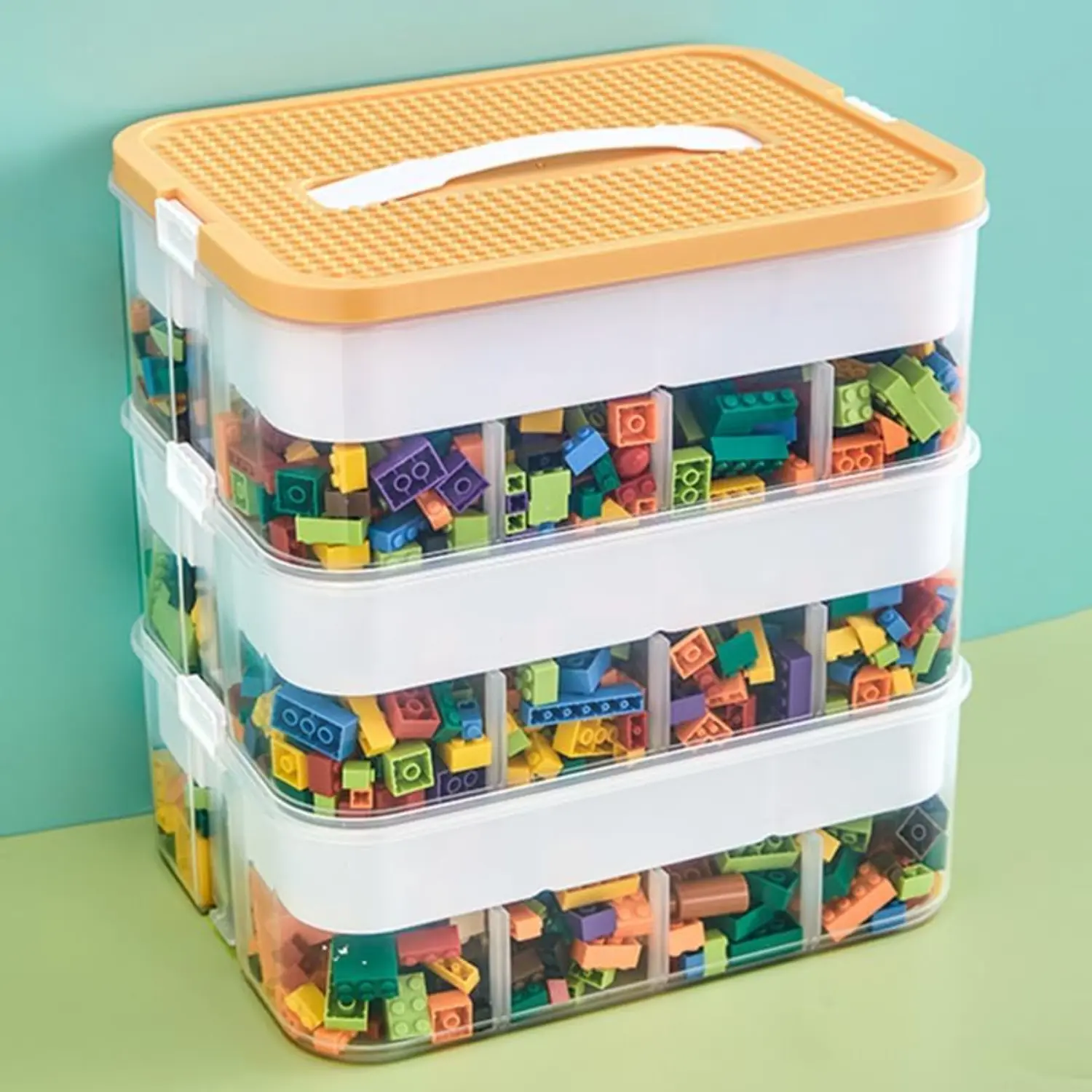 PrimPick Toys Organizer Multi Grids Organizer Storage Case for Lego Box Kids Toy Stackable Building Blocks with Lids Bins Adjustable Lego Storage Containers Plastic Toy Box 3 Layer Clear Plastic Boxes