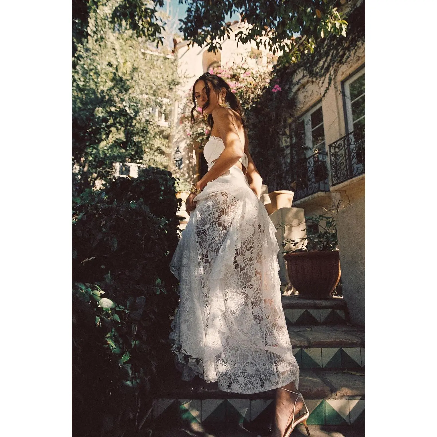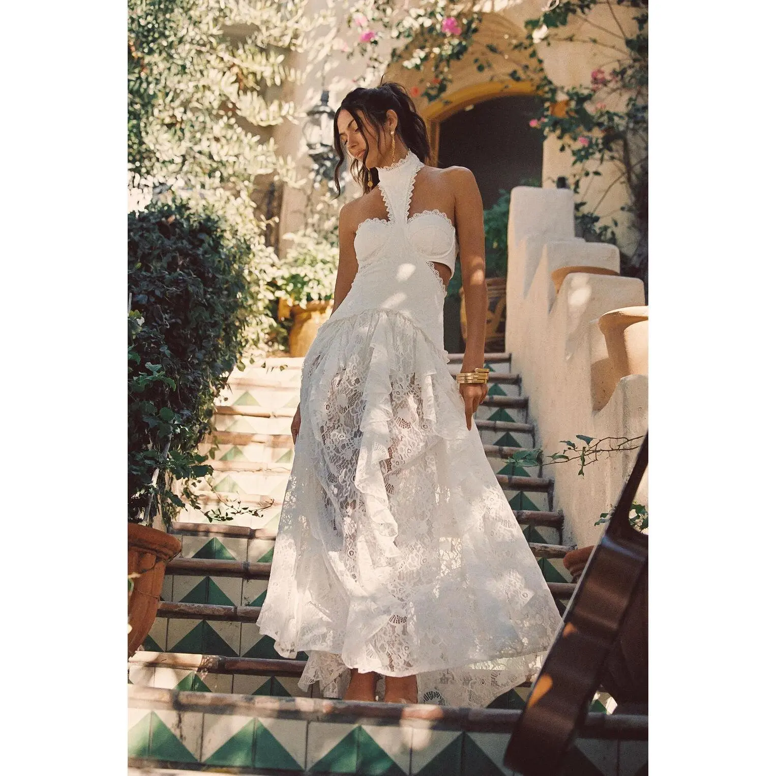 If you loved the Princesa Black Maxi Dress, you'll need the equally stunning version in white. With the same high neck, drop waist and sheer lace skirt, now a romantic white on white the Princesa is a must for your wardrobe. Get dolled up and feel glamorous for any festival, wedding party, or resort weekend this season.