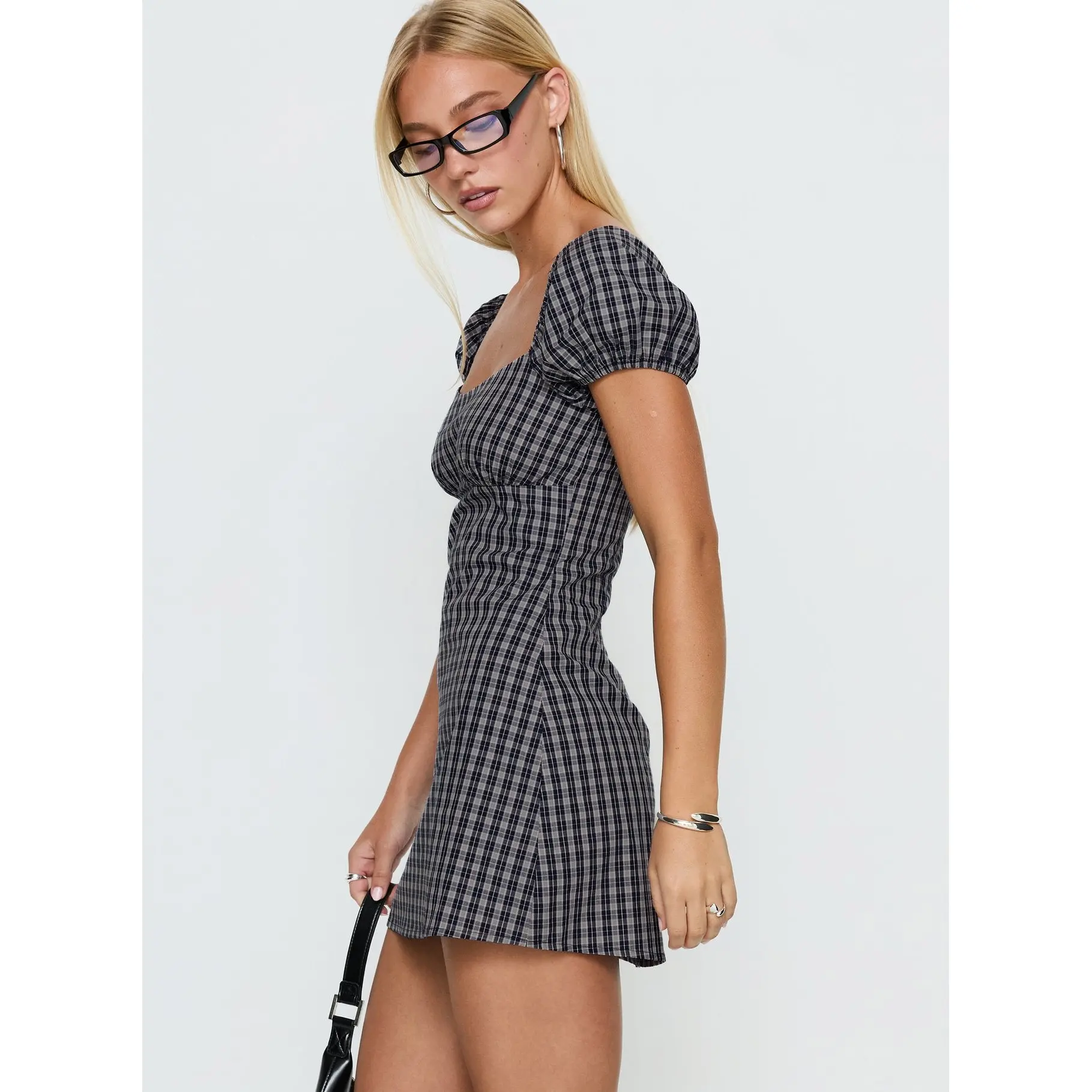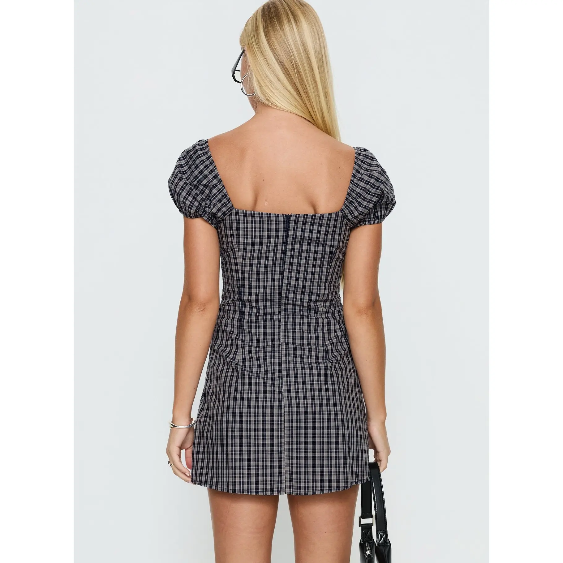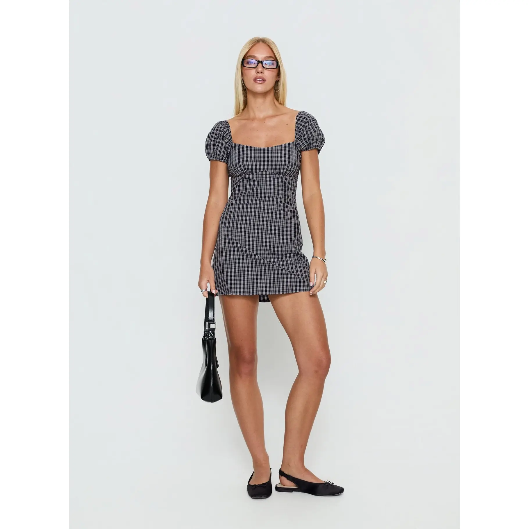 ·Playsuit with elasticated puff sleeves in check print