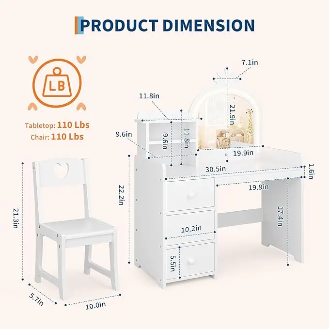 Vanity Desk with Mirror , White Princess Wooden Makeup Vanity with Chair, Storage Shelves and Drawers, 2-in-1 Girls Dressing TableVanity Desk with Mirror , White Princess Wooden Makeup Vanity with Chair, Storage Shelves and Drawers, 2-in-1 Girls Dressing TableVanity Desk with Mirror , White Princess Wooden Makeup Vanity with Chair, Storage Shelves and Drawers, 2-in-1 Girls Dressing TableVanity Desk with Mirror , White Princess Wooden Makeup Vanity with Chair, Storage Shelves and Drawers, 2-in-1 Girls Dressing TableVanity Desk with Mirror , White Princess Wooden Makeup Vanity with Chair, Storage Shelves and Drawers, 2-in-1 Girls Dressing TableVanity Desk with Mirror , White Princess Wooden Makeup Vanity with Chair, Storage Shelves and Drawers, 2-in-1 Girls Dressing TableVanity Desk with Mirror , White Princess Wooden Makeup Vanity with Chair, Storage Shelves and Drawers, 2-in-1 Girls Dressing TableVanity Desk with Mirror , White Princess Wooden Makeup Vanity with Chair, Storage Shelves and Drawers, 2-in-1 Girls Dressing Table