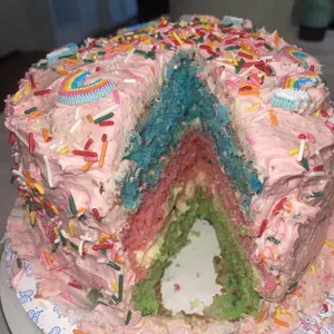 My daughter is obsessed with all the animals and the “rainbow bows”! So cute! We made our own rainbow cake after reading this book.