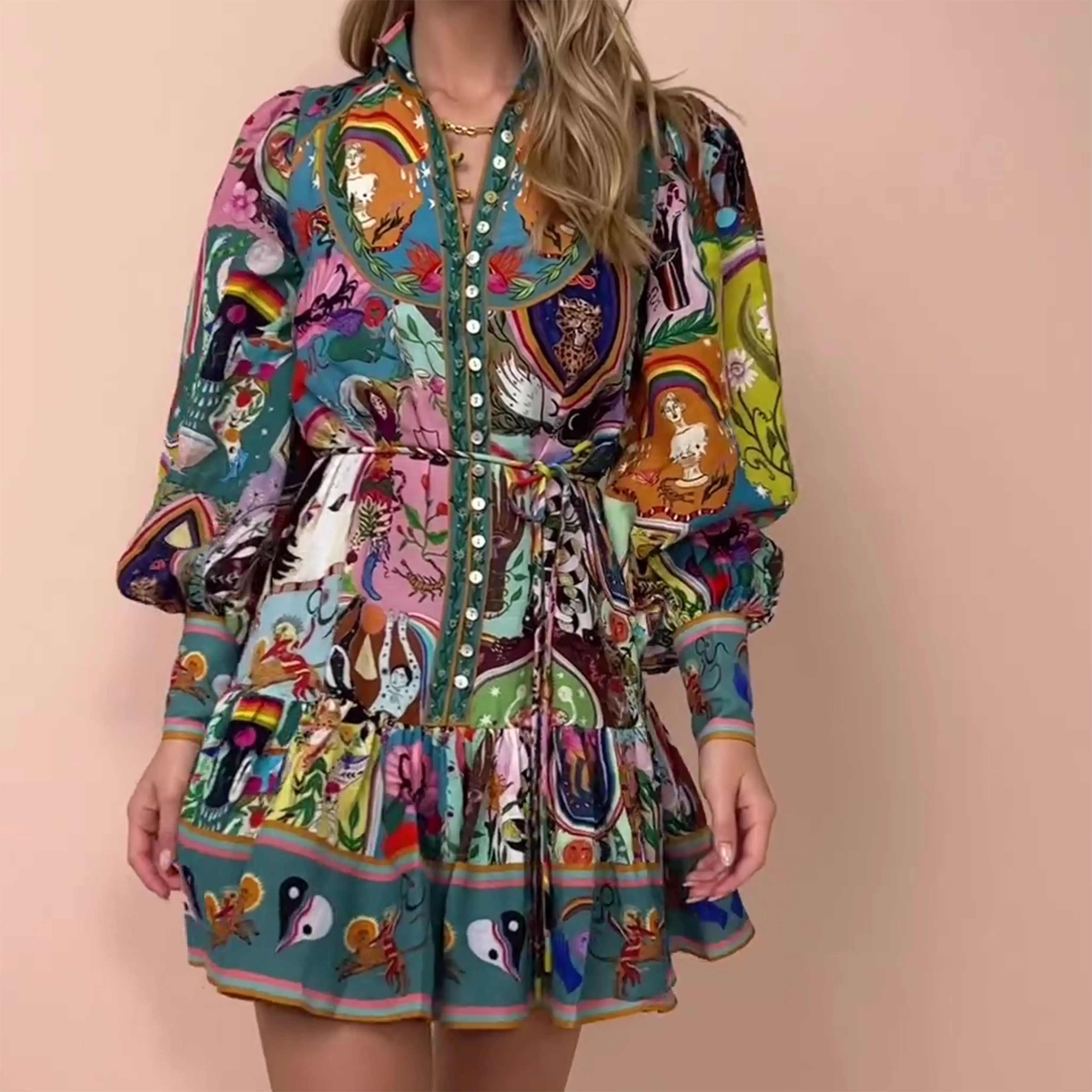 ✨ Fantasy Bohemian Style – Embrace surreal narratives with this dress, blending Bohemian culture's free-spiritedness with fantastical elements. Its artistic design features highly saturated contrasting colors and symbolic patterns, creating a dense, layered visual effect. Perfect for enhancing a romantic atmosphere with an imaginative, fairy-tale-like vision.
