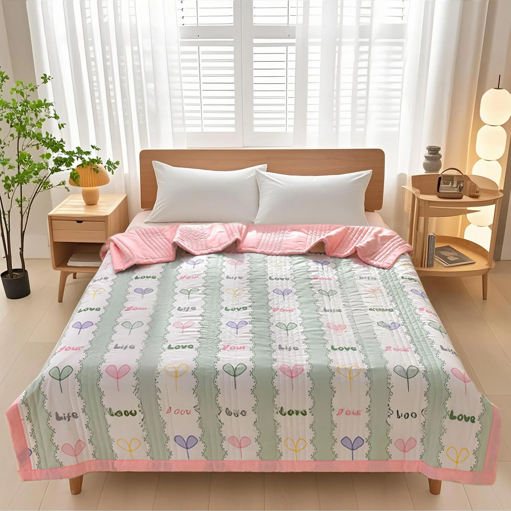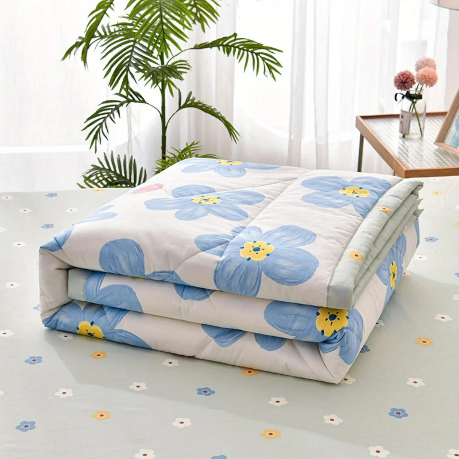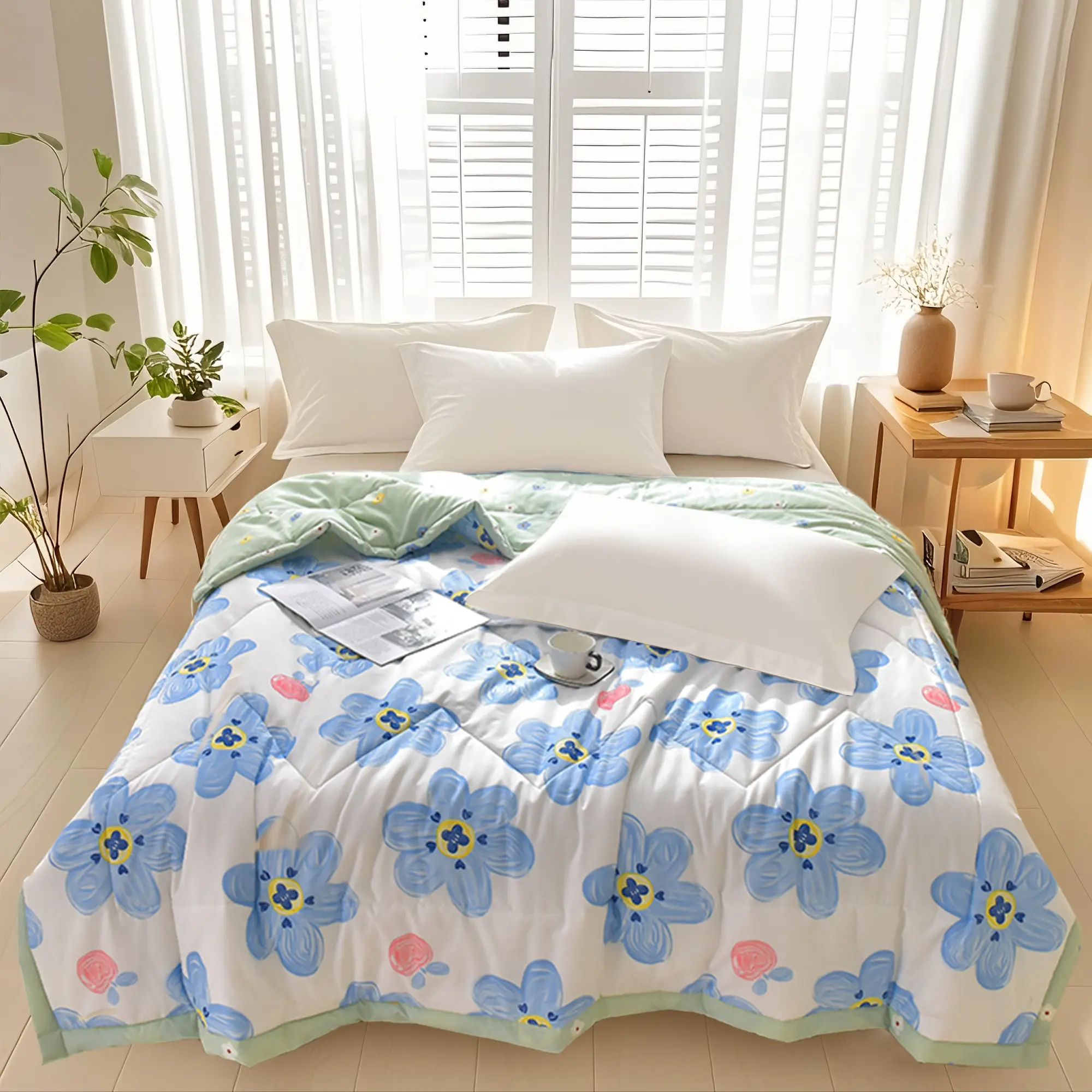 Printed Quilt Thin Comforter Bedspread Soft Skin-Friendly Microfiber Filling Machine Washable All-season Lightweight No Pillowcases