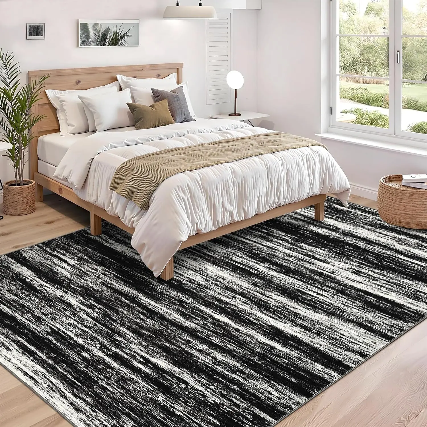 Modern Abstract Design: Elevate your home decor with our stylish modern abstract area rug, featuring a unique striped pattern that complements any living room, bedroom, or hallway. Its contemporary look adds a touch of elegance to your space while providing comfort underfoot.