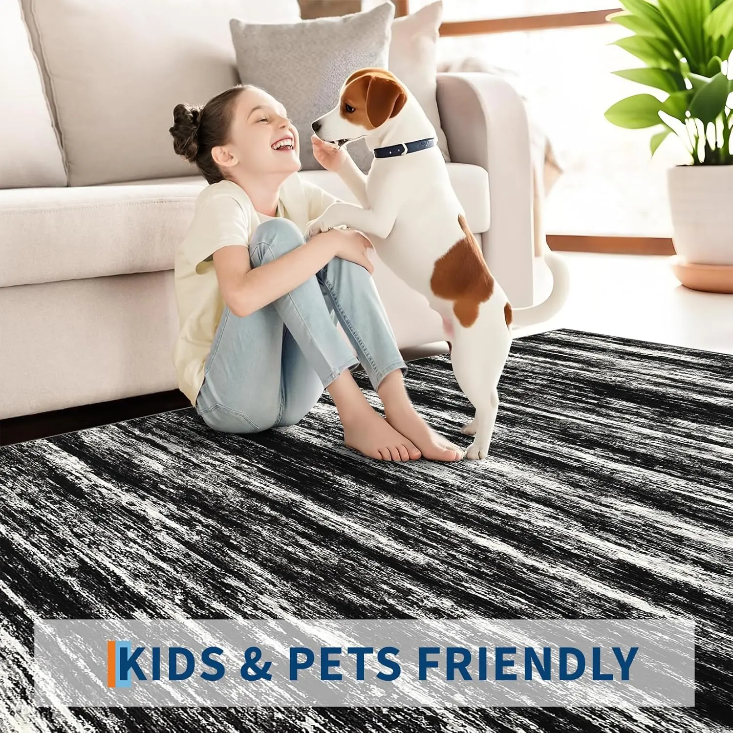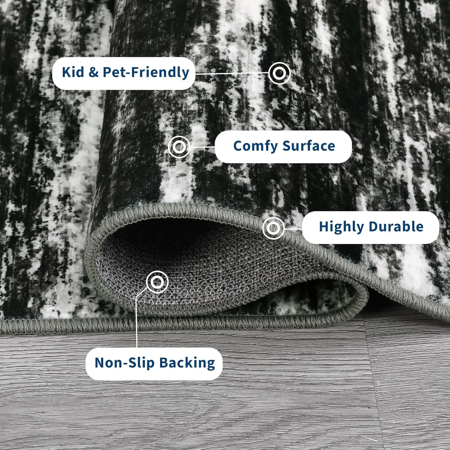 Non-Slip Backing: Safety is a priority with our area rug's non-slip backing, providing stability on various floor types. This feature ensures that your rug stays in place, preventing slips and falls, making it ideal for families with children and pets.