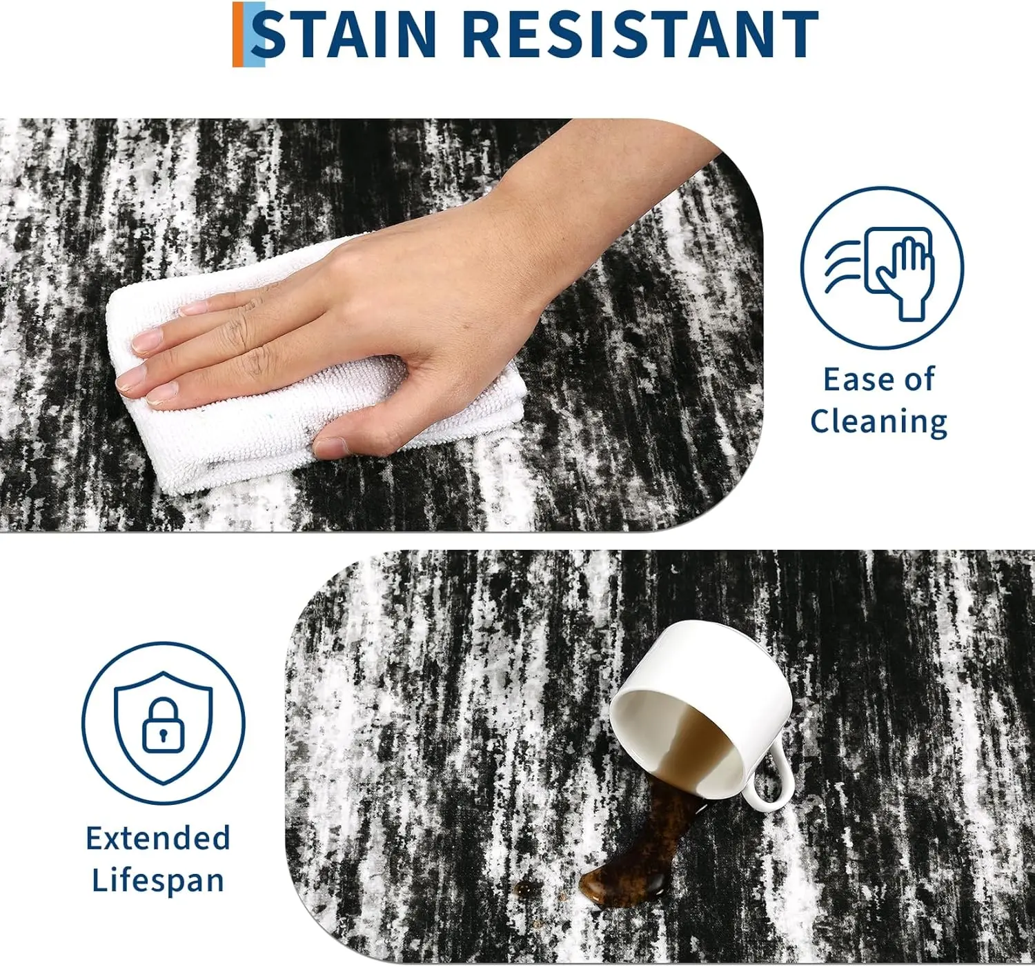 Stain Resistant & Easy Cleaning: Our rug is designed to resist stains, making it perfect for high-traffic areas like kitchens and laundry rooms. Its low pile construction allows for easy cleaning, so you can spend less time worrying about spills and more time enjoying your home.