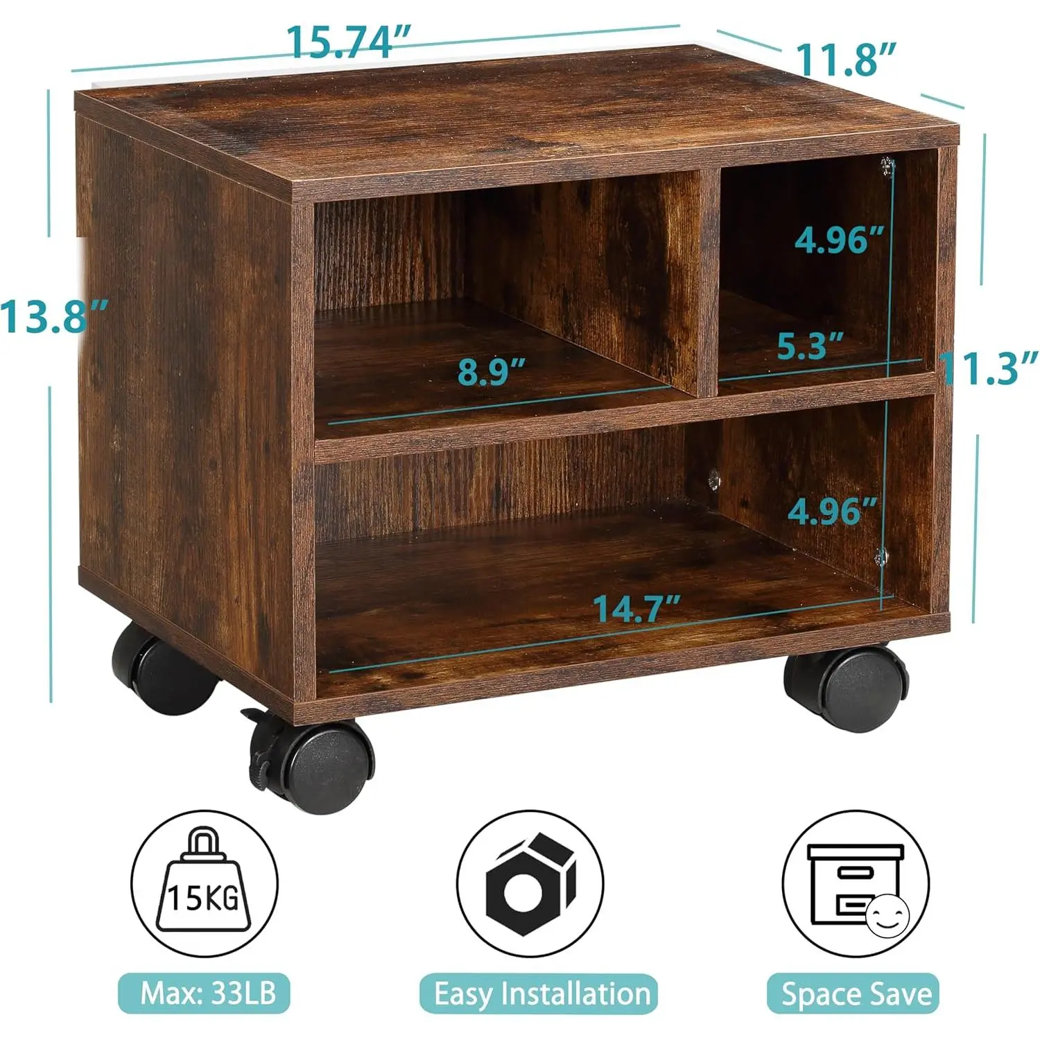 ·[Space-Saving] - With a compact design, this printer stand is perfect for small spaces.It can easily fit under a desk or in a corner, saving you valuable space in your home or office.