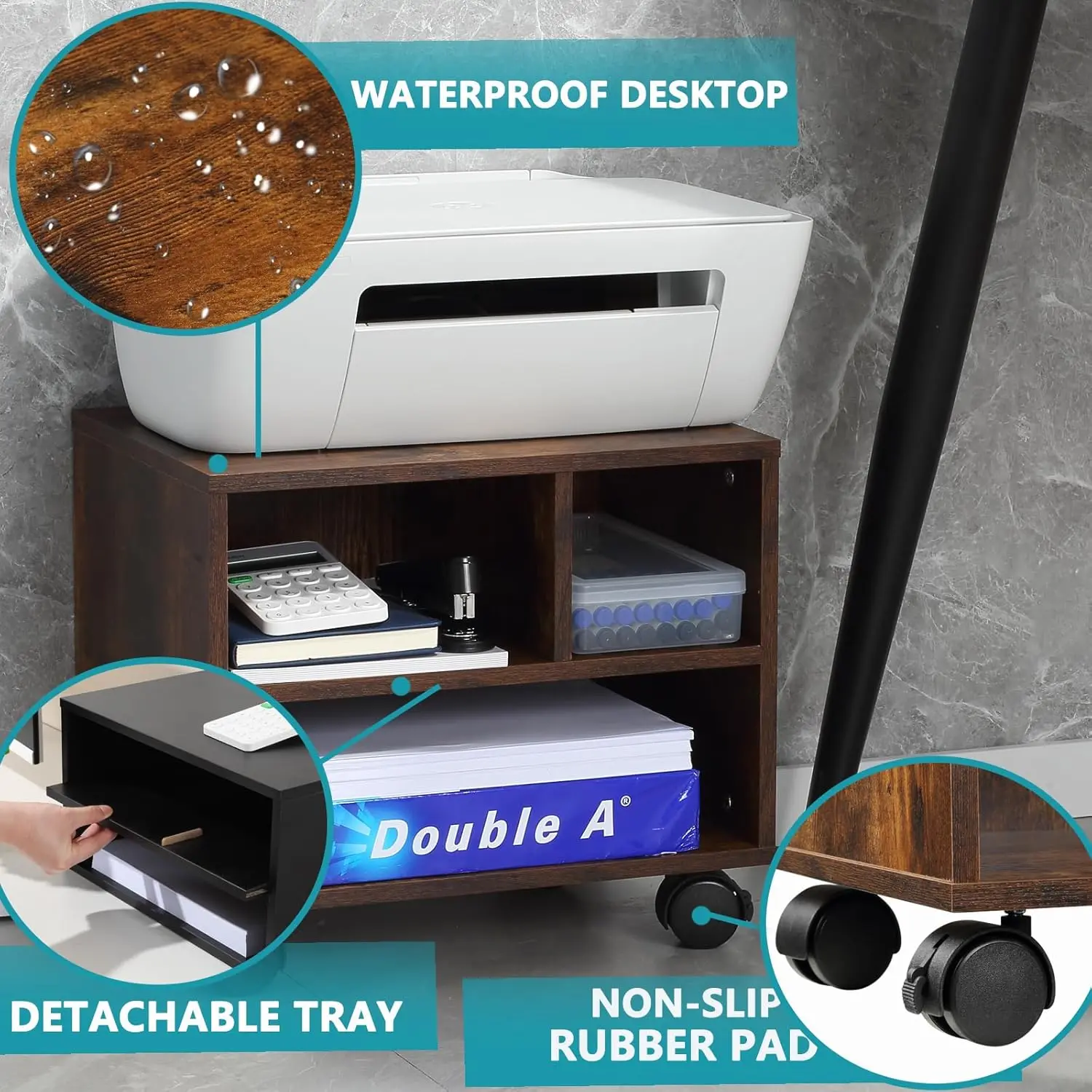 ·[Versatile Design] - Our printer stand can be used as a tabletop or floor stand.Equipped with 4 smooth-rolling wheels, this printer cart can be easily moved from one location to another and lockable design to keep it in place, making it perfect for use in a home office or workplace