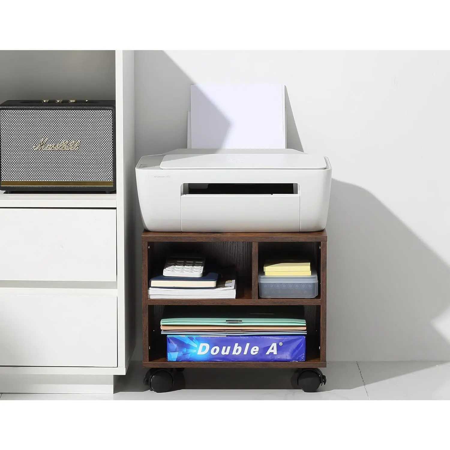 ·[Sturdy Structure] -The combination of metal and particleboard in the cart's construction ensures that it is both sturdy and long-lasting, providing excellent stability and support for your printer, Heavy-Duty Top Plate With a weight capacity of up to 20 kg each shelf of the cart can undertake up to 7.7 kg, making it perfect for storing paper, ink cartridges, and other printer accessories.