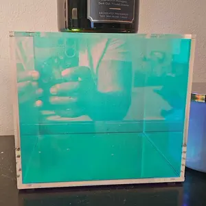 Beautiful box. Really reminds me of a prism. Can't wait fir my face towels to arrive so that I can put them in the box. Great quality and great price.