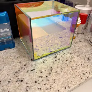 I love this container. It matches my vibe perfectly. It is so beautiful with the iridescent rainbow effect. It hold the cloths perfect.