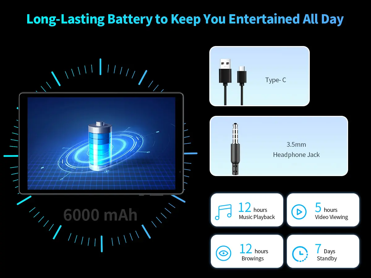 ·6000mAh Battery: Provides long-lasting power for continuous use.