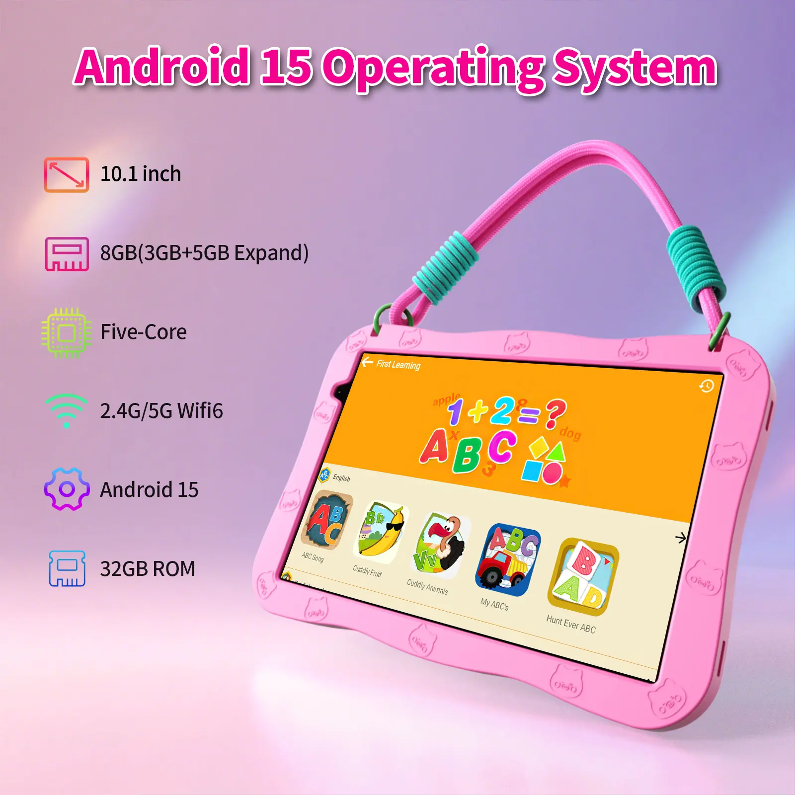 Ever wish your kid’s tablet was both fun and safe? The PRITOM Kids Tablet nails it with a 10.1-inch HD touchscreen that’s just right for tiny fingers. Powered by Android 15 with 8GB RAM and 32GB storage, it runs smoothly whether they’re playing games or exploring educational apps. Dual cameras let them snap selfies or video chat with family, while WiFi 6 keeps connectivity fast and reliable. The 6000mAh battery means less charging stress and more playtime. Plus, the kid-proof silicone case with a handy strap comes in pink or blue, adding protection and style. Eye protection mode and built-in parental controls like time limits and safe content filters give you peace of mind. Animal flash cards and fun learning apps make this tablet a perfect toddler gift that blends education with entertainment. Ready to make screen time smarter and safer? Grab a PRITOM Kids Tablet today and watch your little one’s imagination soar!