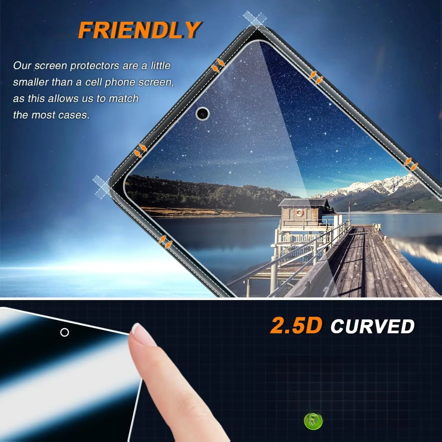 ·A: No problem, our screen protector is slightly smaller, in order to be compatible with all mobile phone cases, and this does not affect the protection function.